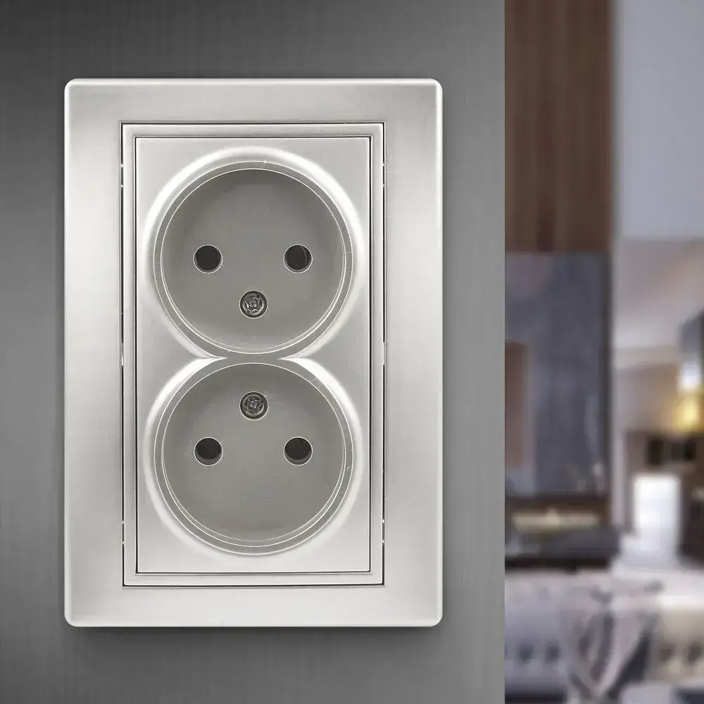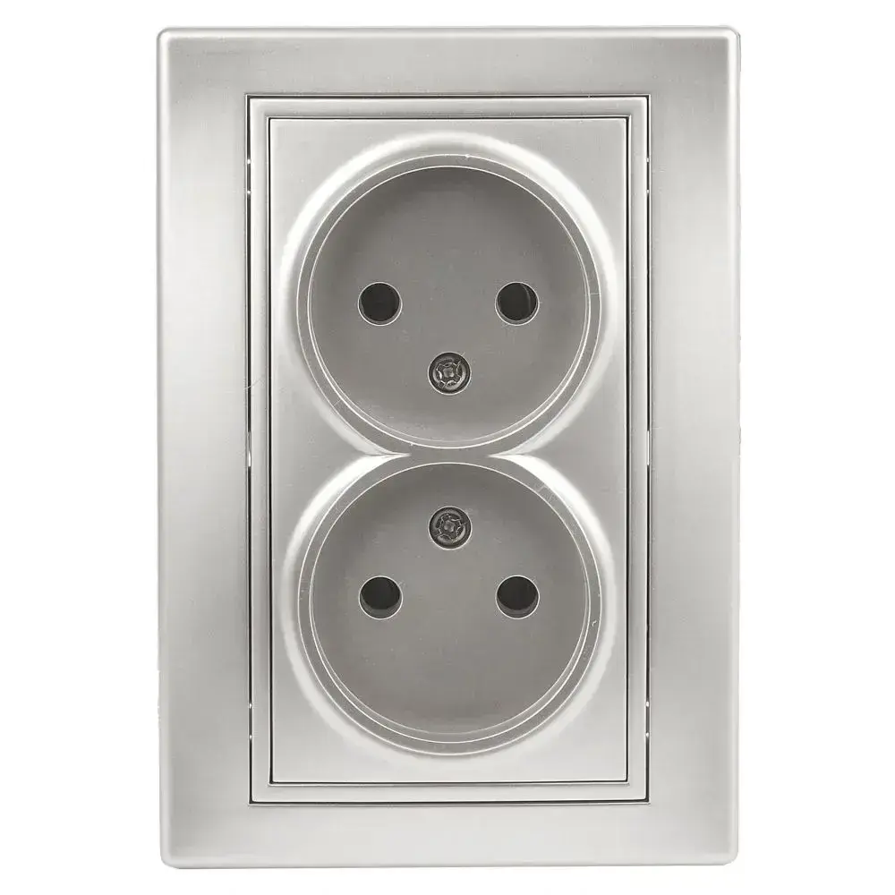 Розетка Intro Plano 1-204-03 без заземления двойная 2х2P 16А-250В IP20 скрытой установки алюминий