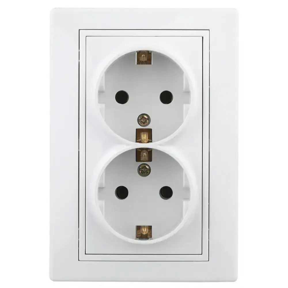 Розетка Intro Plano 1-205-01 с заземлением двойная 2X2P+E Schuko 16А-250В IP20 скрытой установки белая