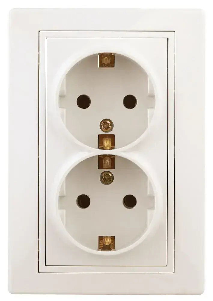 Розетка Intro Plano 1-205-02 с заземлением двойная 2X2P+E Schuko 16А-250В IP20 скрытой установки слоновая кость