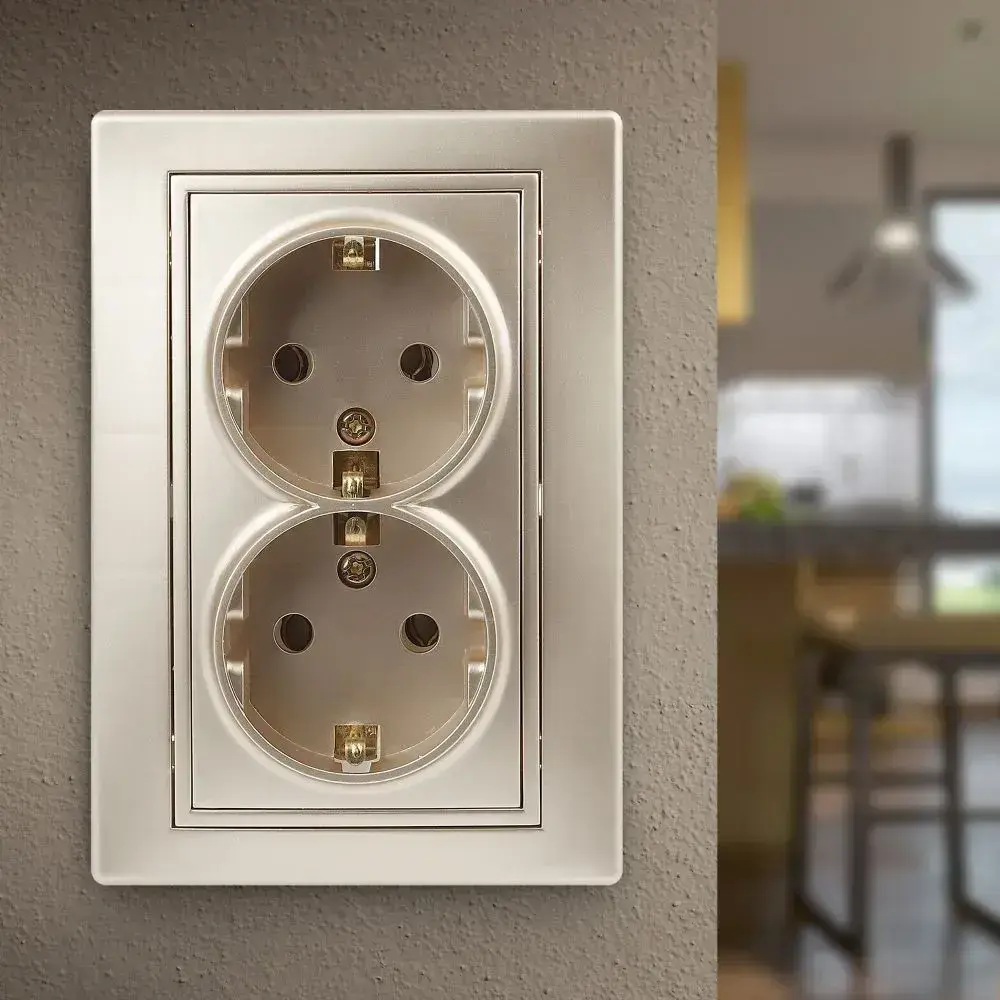 Розетка Intro Plano 1-205-04 с заземлением двойная 2X2P+E Schuko 16А-250В IP20 скрытой установки шампань