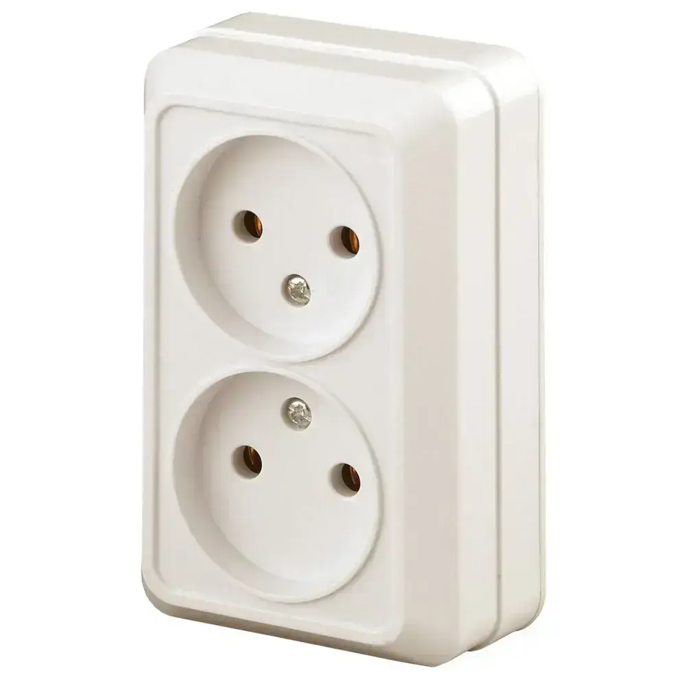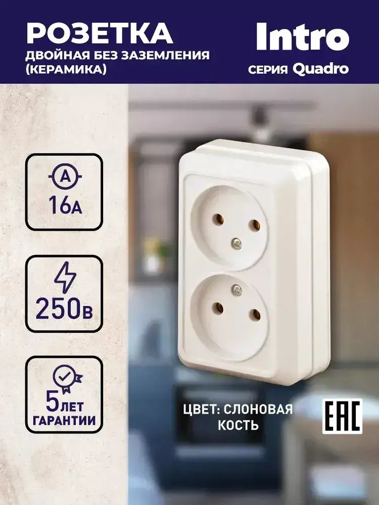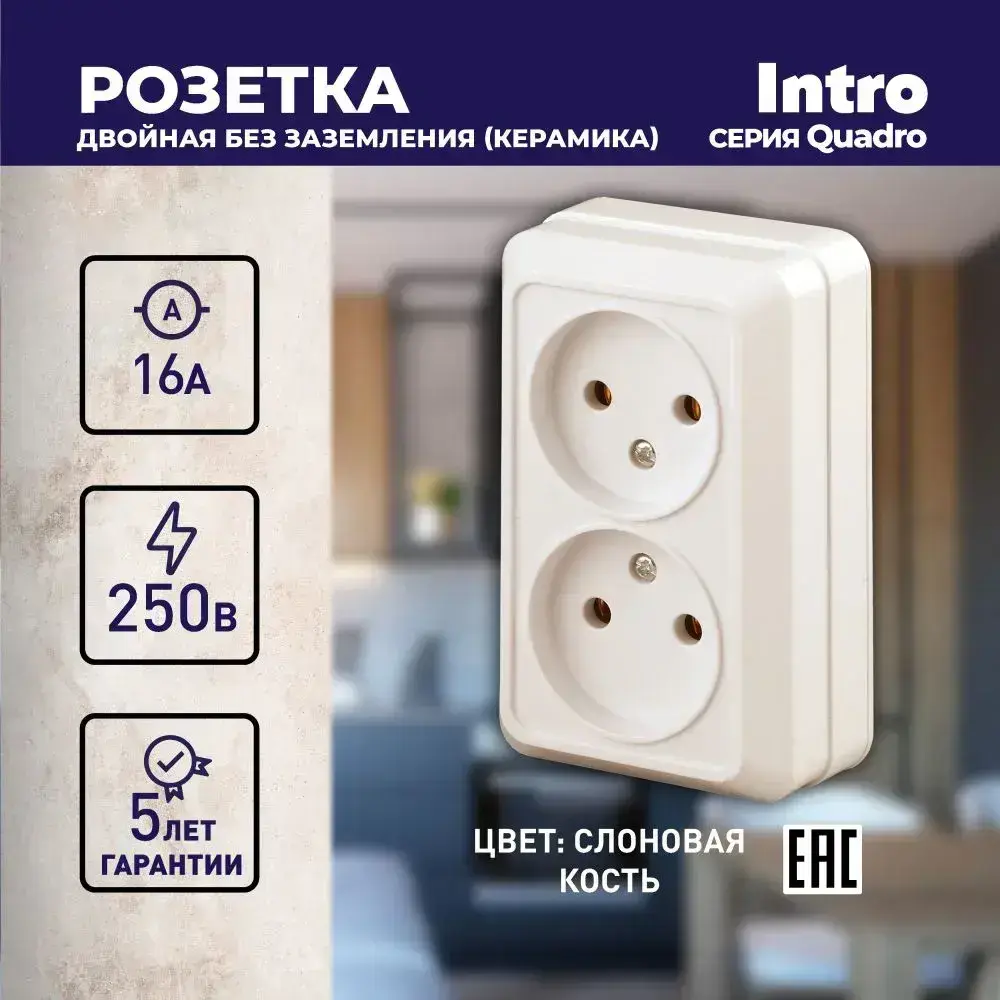 Розетка Intro Quadro 2-203-02 двойная без заземления 2х2P 16А-250В IP20 открытой установки Quadro слоновая кость
