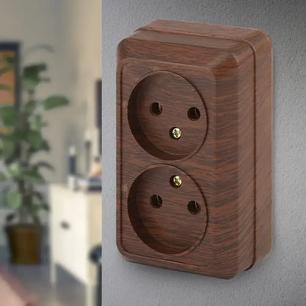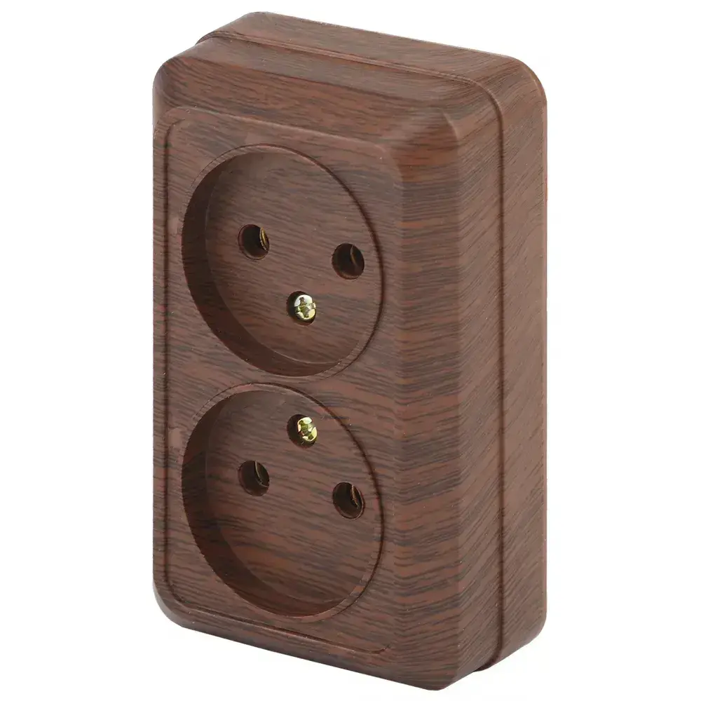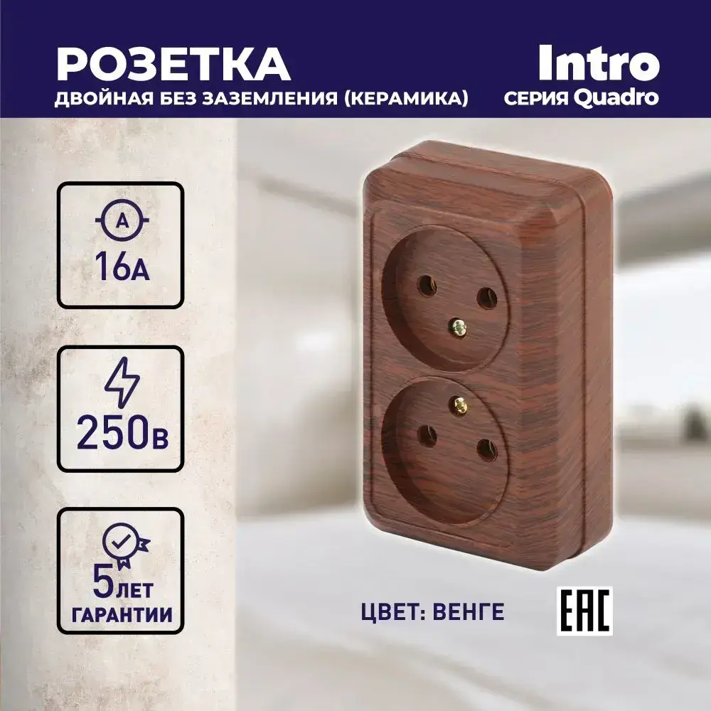 Розетка Intro Quadro 2-203-10 двойная без заземления 2х2P 16А-250В IP20 открытой установки Quadro венге
