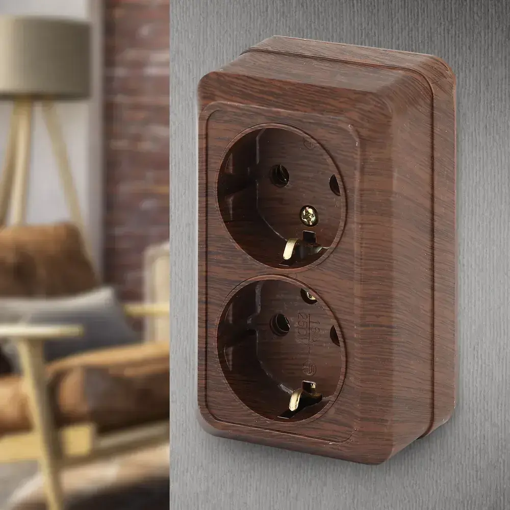 Розетка Intro Quadro 2-204-10 с заземлением двойная 2х2P+E Schuko 16А-250В IP20 открытой установки венге