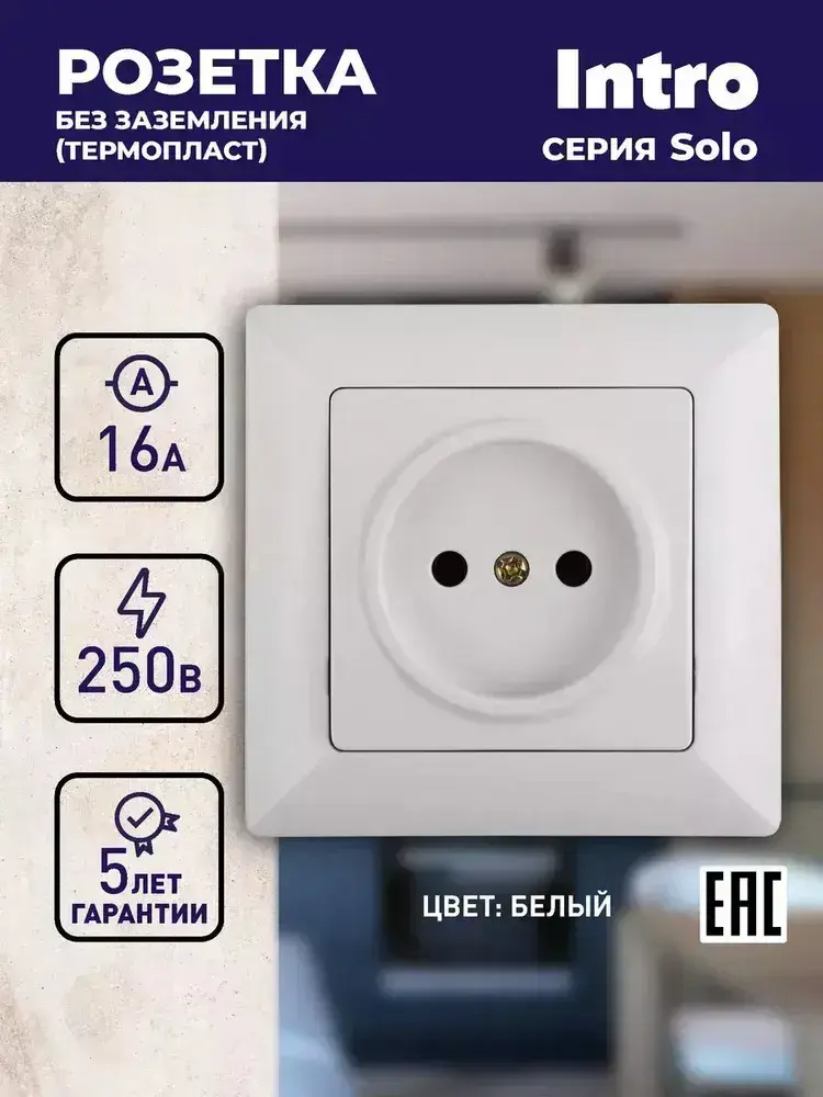 Розетка Intro Solo 4-201-01 без заземления 2P 16А-250В IP20 скрытой установки белая