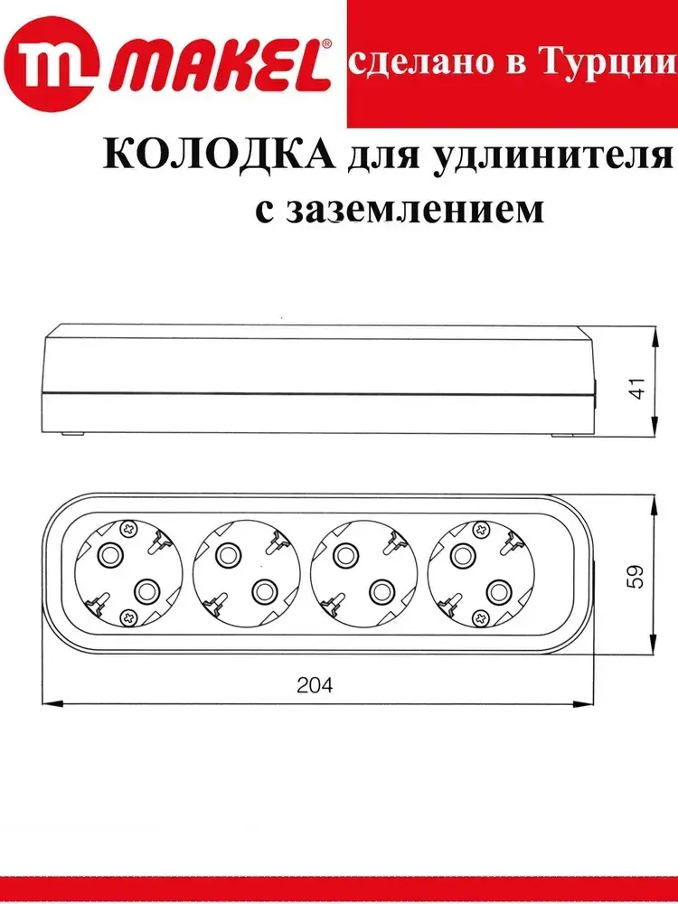 Розетка (колодка для удлинителя) 4 гнезда с заземлением,MGP2151, черная Makel