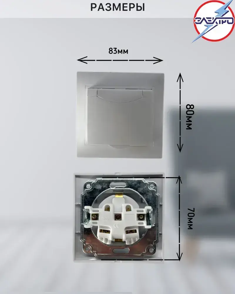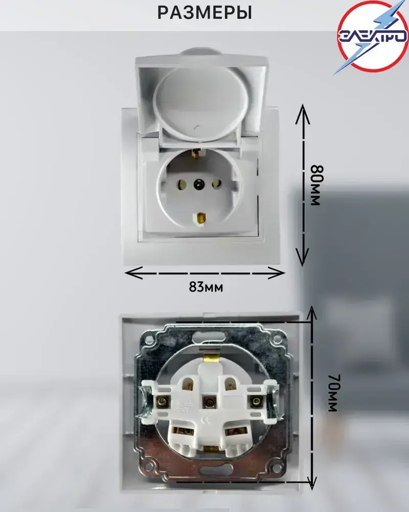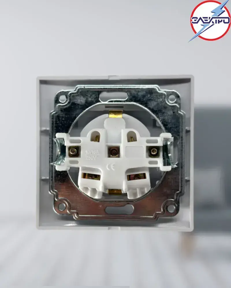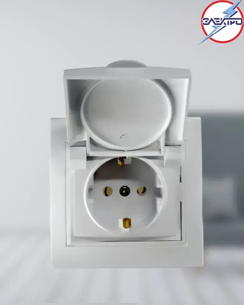 Розетка одинарная МИРА с крышкой + рамка, с заземлением, цвет белый, внутренняя