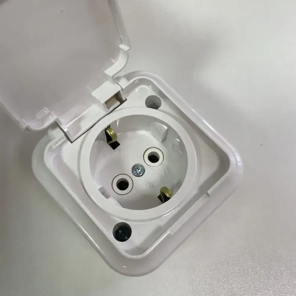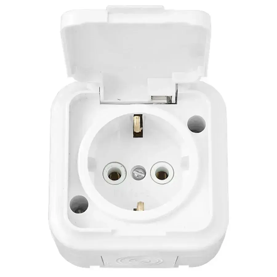 Розетка одноместная, уличная, влагозащищенная, открытой установки 16А, IP54 с заземлением, серия ПР, с крышкой