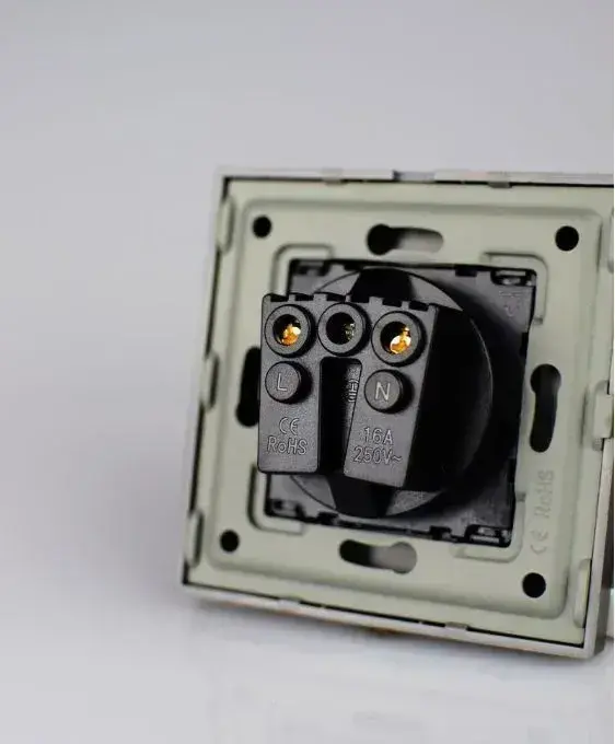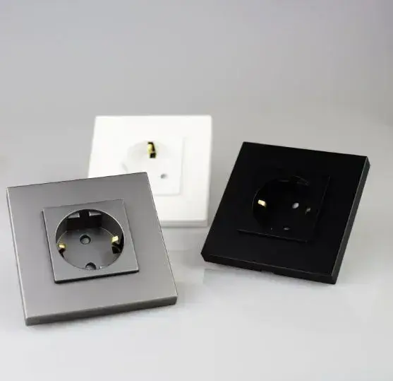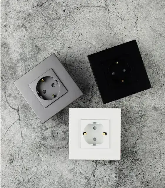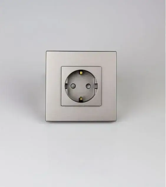 Розетка серая с заземлением и защитными шторками от детей, евророзетки