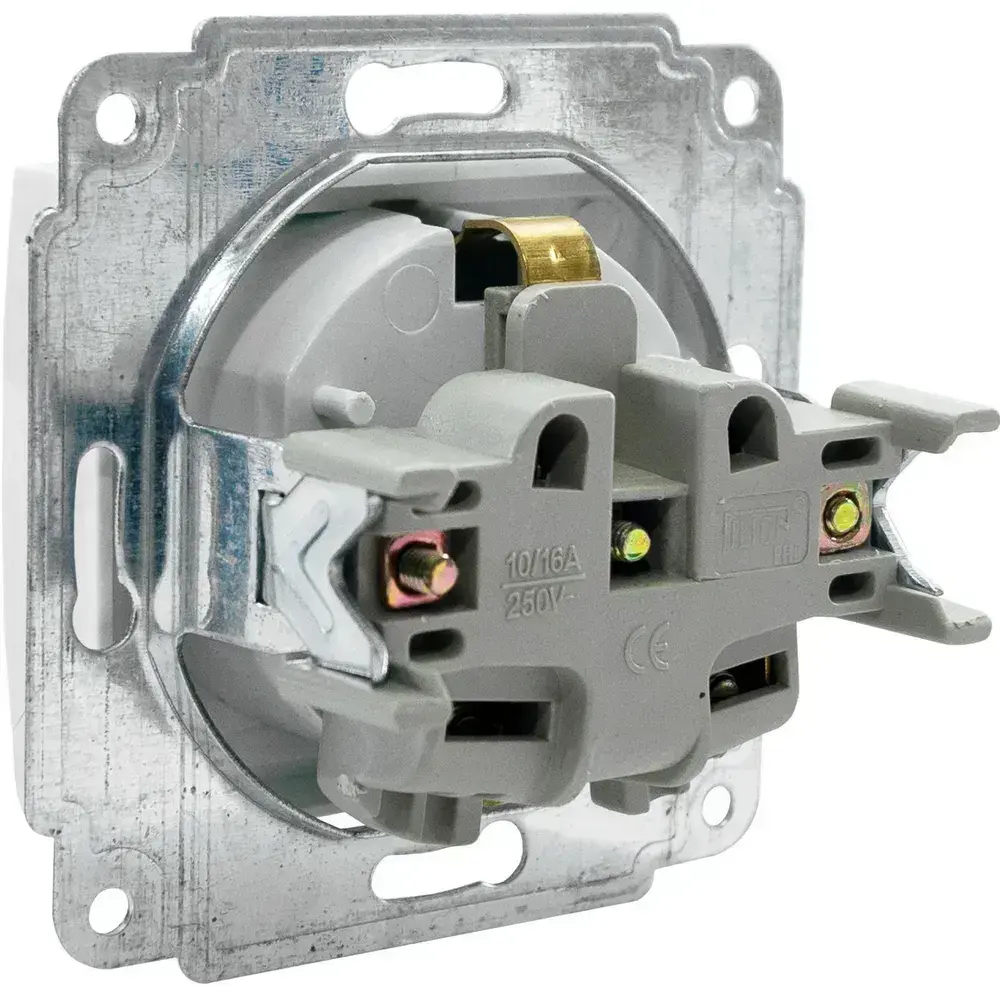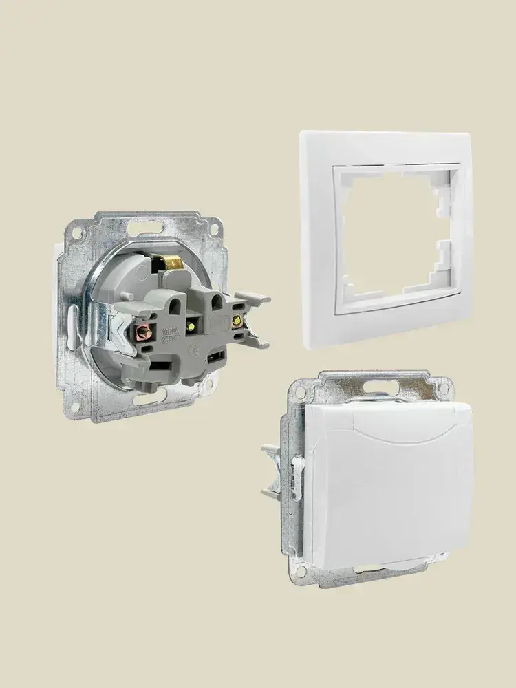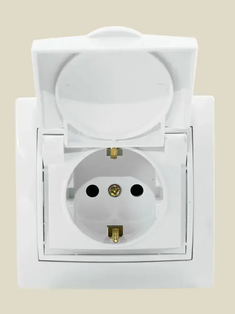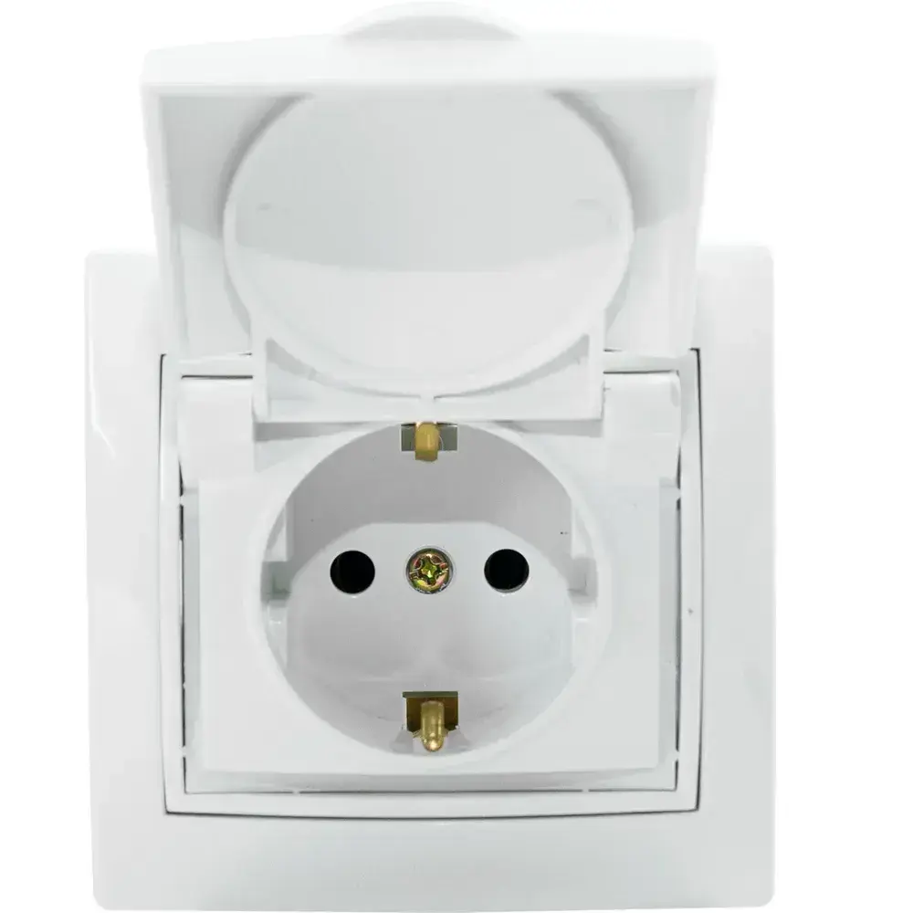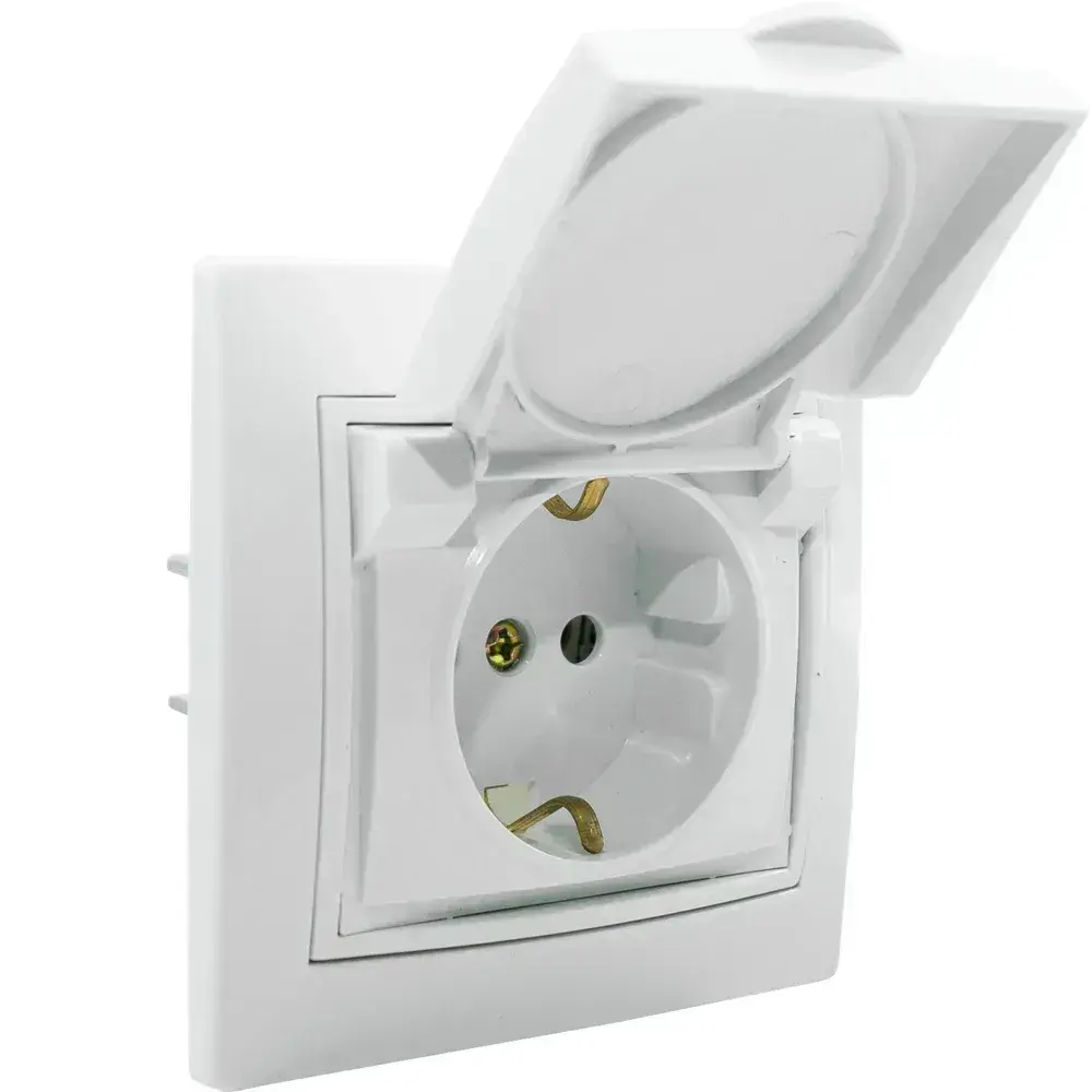 Розетка встраиваемая одинарная с заземления с крышкой IP 44 Jilion белый