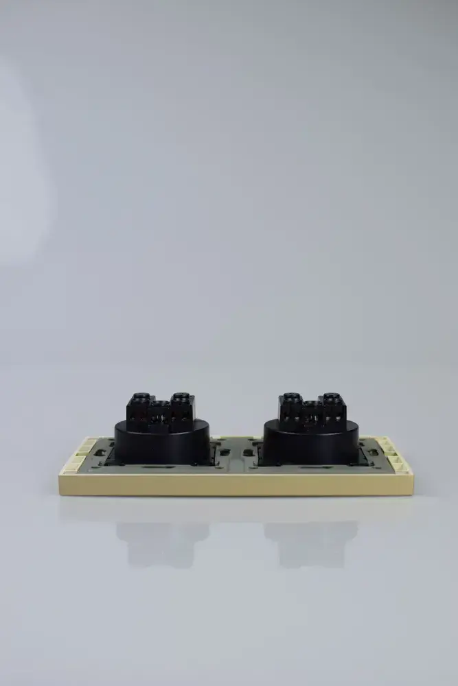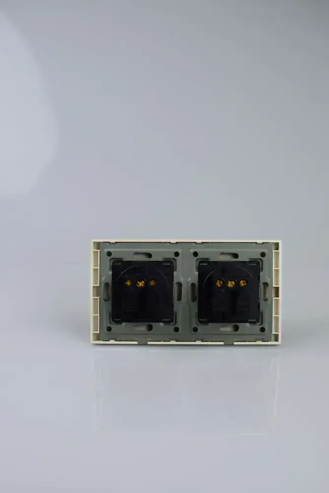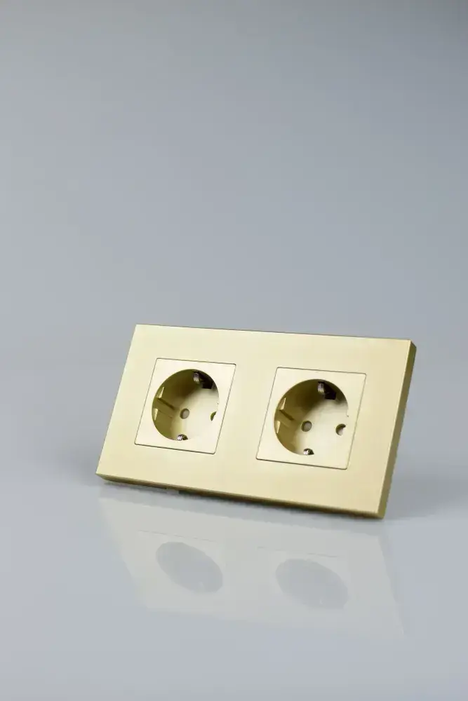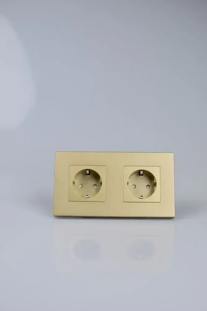 Розетка золотая с заземлением, двойная розетка с защитными шторками