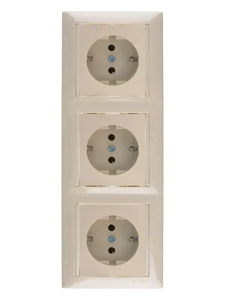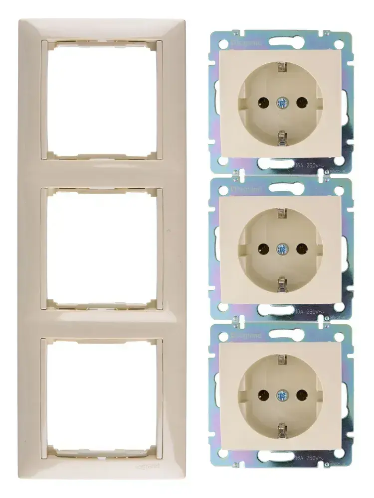 Розетки с заземлением 3 шт + рамка 3 поста Legrand valena 220В, 16А,цвет слоновая кость