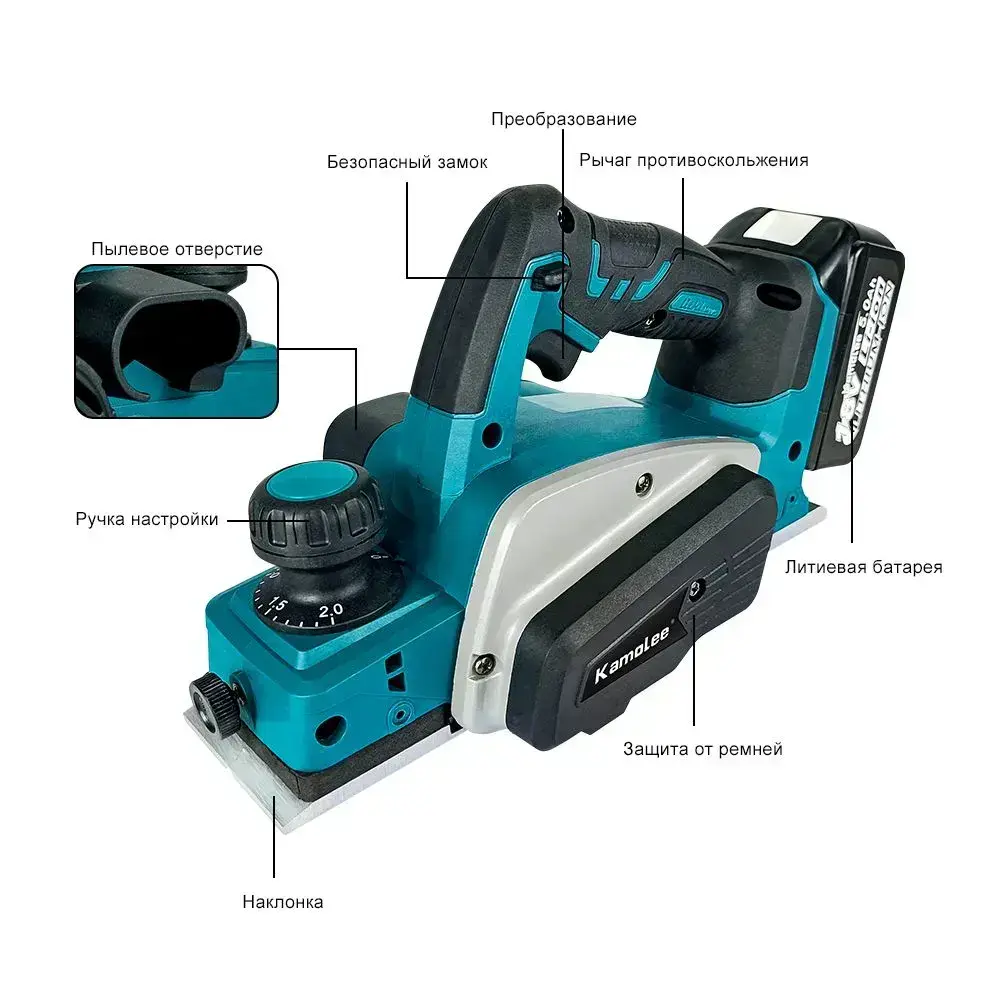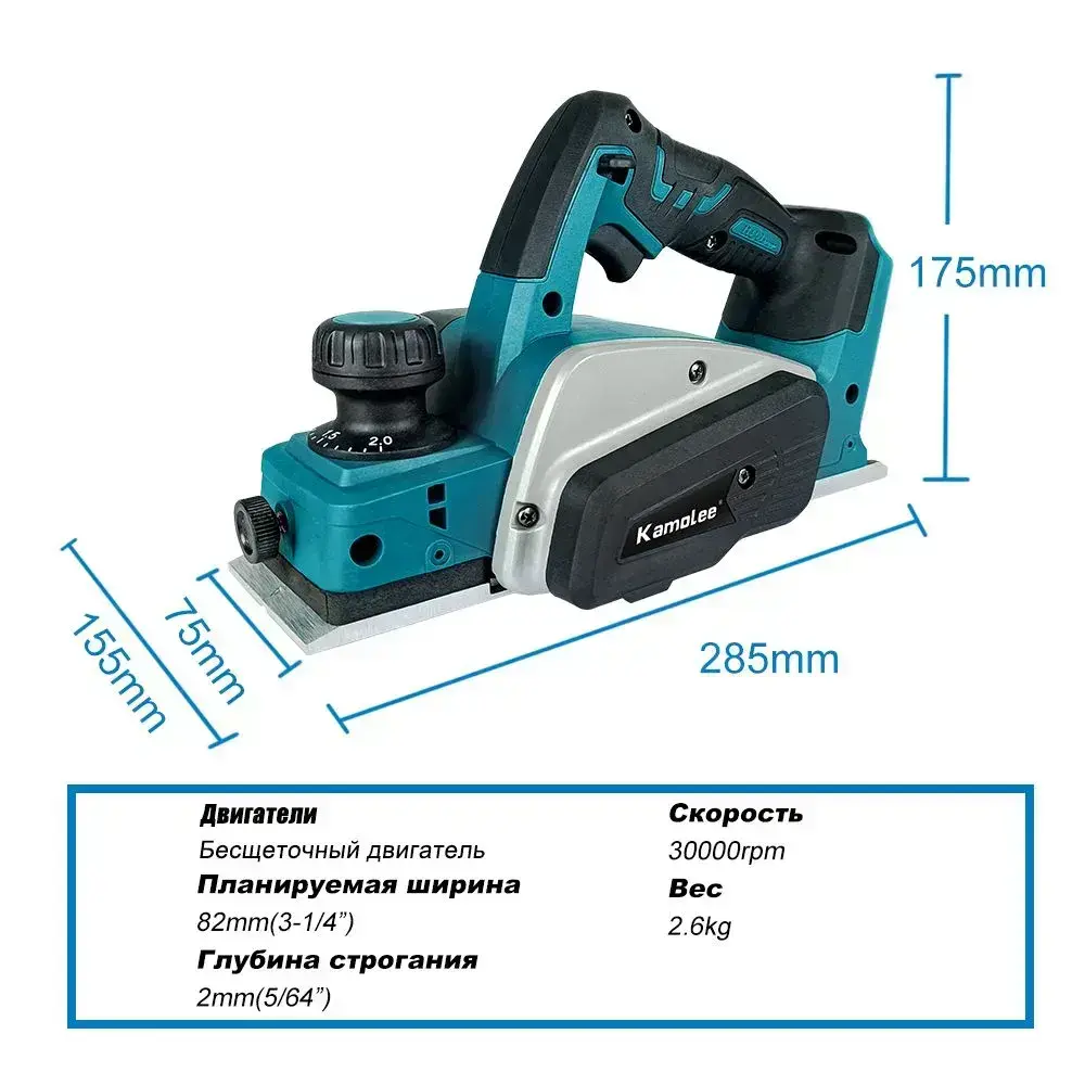 Рубанок электрический Kamolee, 30000об/мин, 82mm, 2mm (Без АКБ,Картонная упаковка)