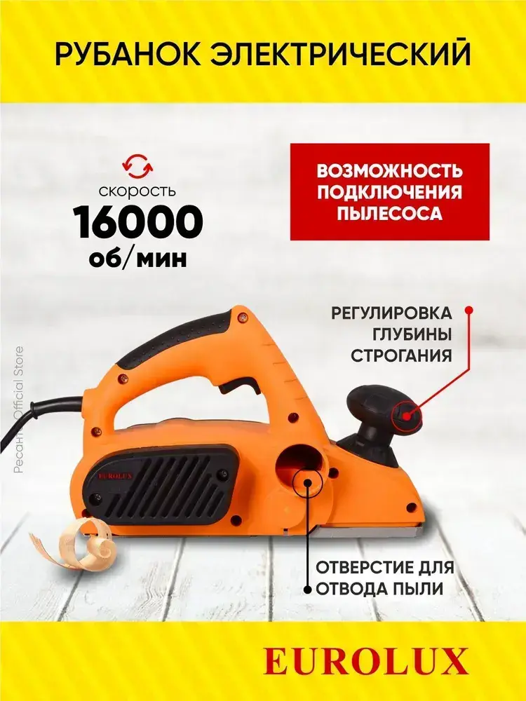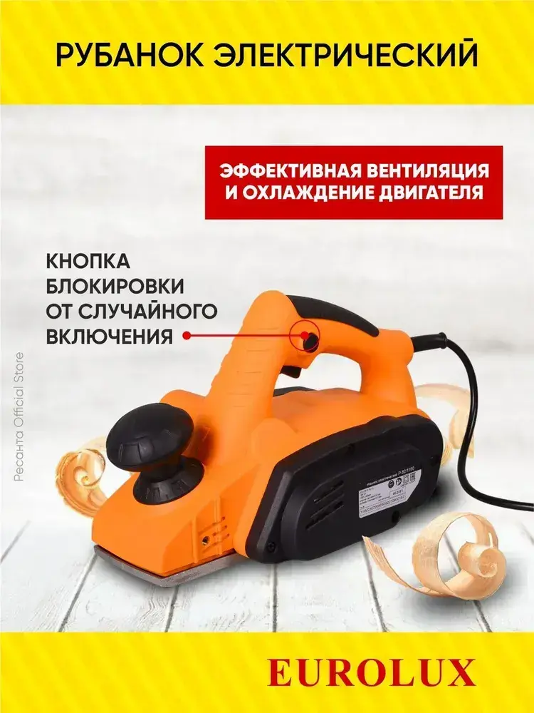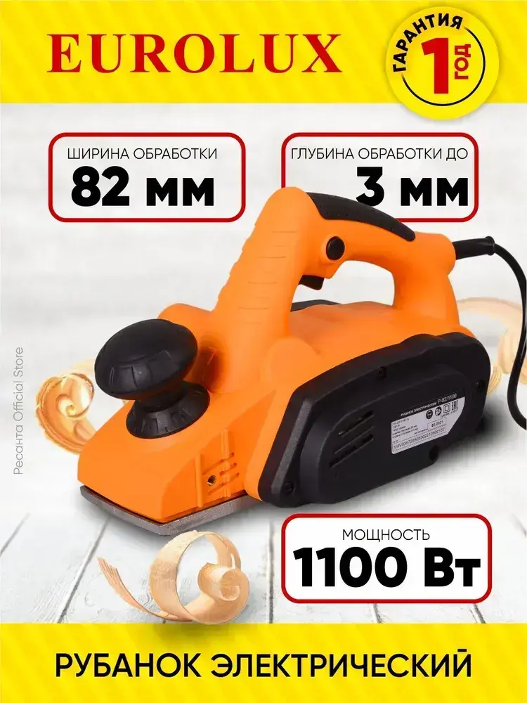 Рубанок электрический Р-82/1100 Eurolux - 82мм, 1100Вт, глубина строгания до 3мм