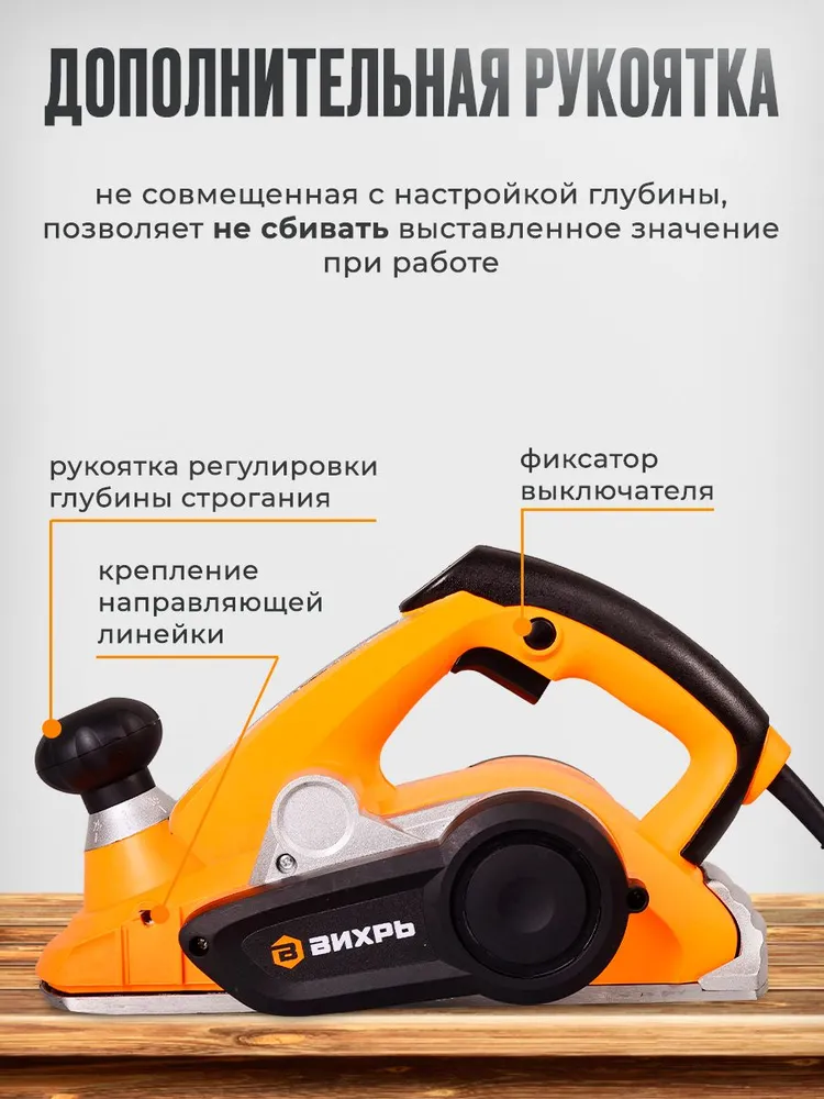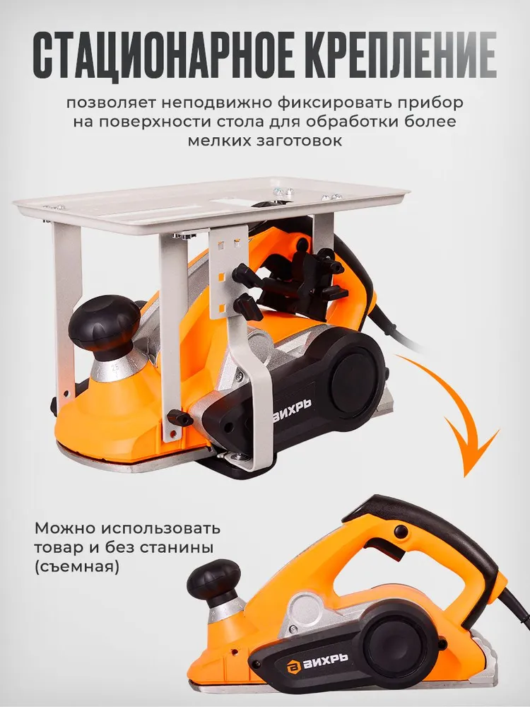 Рубанок электрический Вихрь Р-110СТ со станиной (1300 Вт, 15000 об/мин, глубина 3.5 мм, ширина - 110 мм, стационарное крепление, 6 кг)/ Электрорубанок