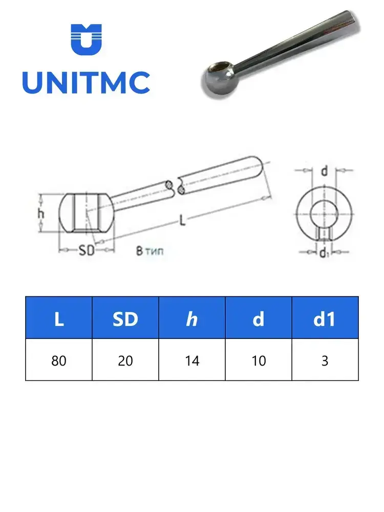 Ручка коническая зажимная UnitMC со сквозным отверстием 80х10 (Косая) 100121-80х10-B