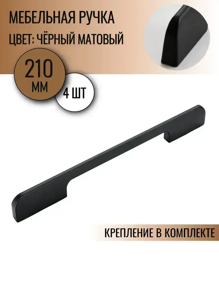 Ручка мебельная А 210 мм (192) черная 4 шт.