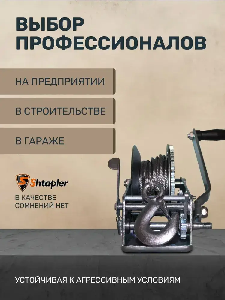 Ручная лебедка 1,36т 20м барабанная тросовая FD-3000
