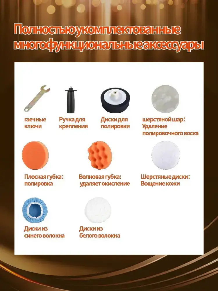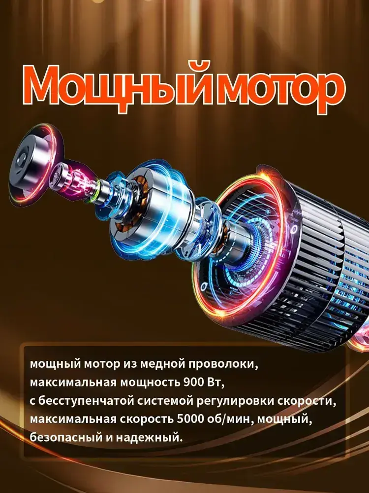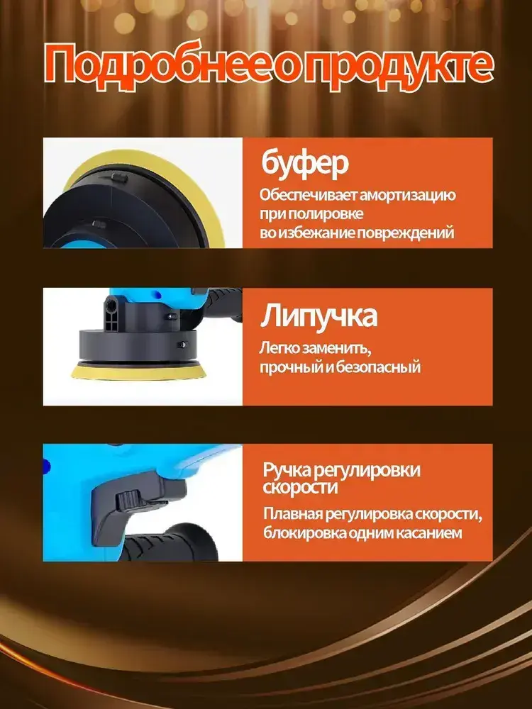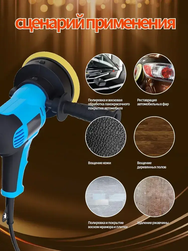 Ручная полировальная машинка электрическая, сетевая с регулируемой скоростью / Шлифовальная машинка для полировки и детейлинга кузова, 900 Вт