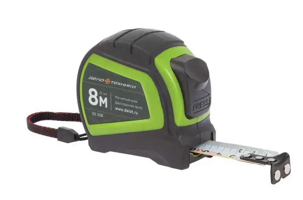 Рулетка Дело Техники в обрезиненном корпусе 8м х 25мм, 101308