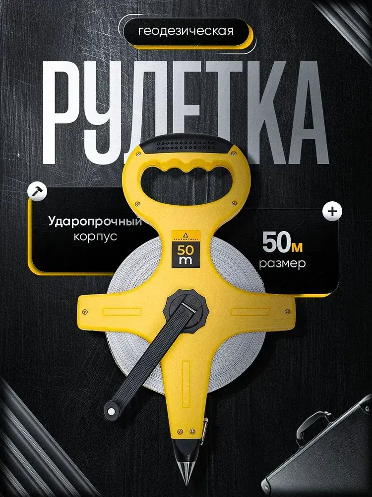 Рулетка геодезическая, 50м, лента армированная стекловолокном, ABS пластик