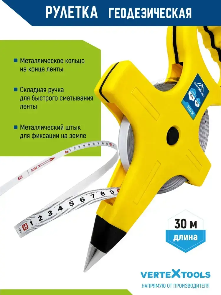 Рулетка геодезическая металлическая лента 30 м