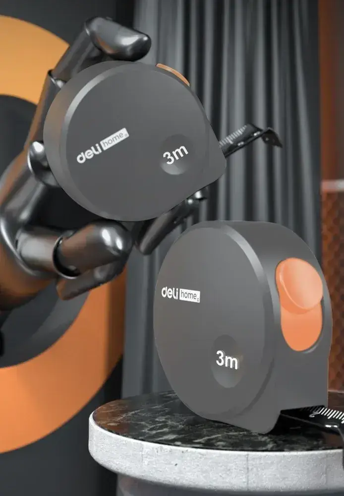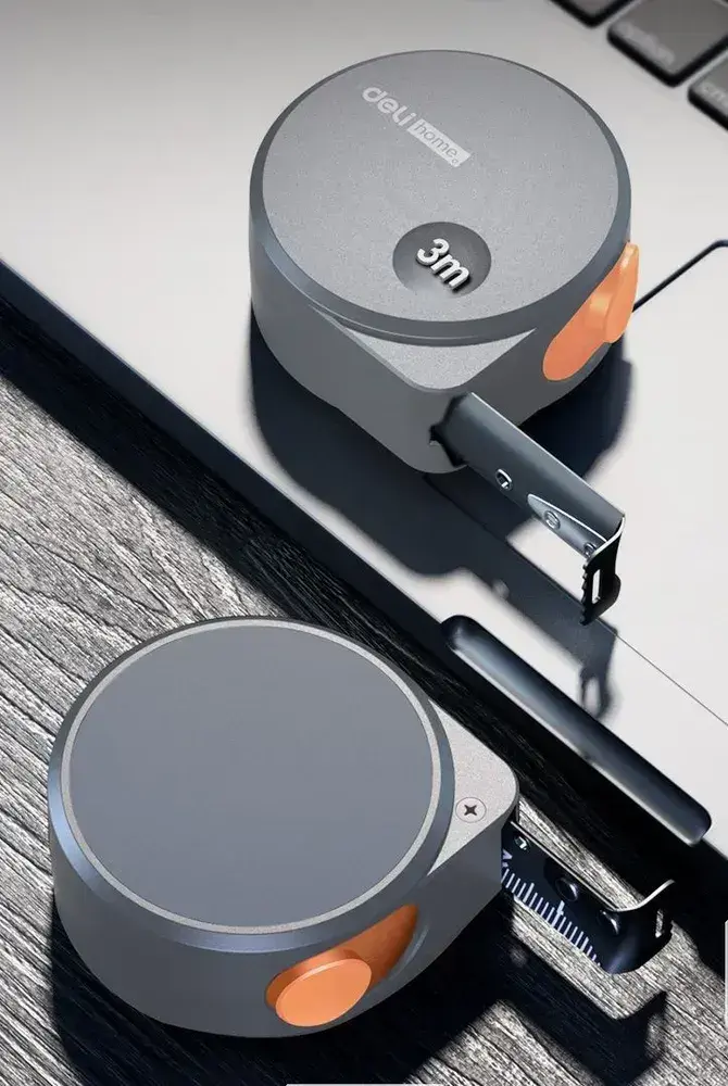 Рулетка "Home Series Gray" Deli HT8316C 3мх16мм (эксклюзивный дизайн, корпус из софттач пластика, противоскользящая резиновая вставка, подарочная упаковка)
