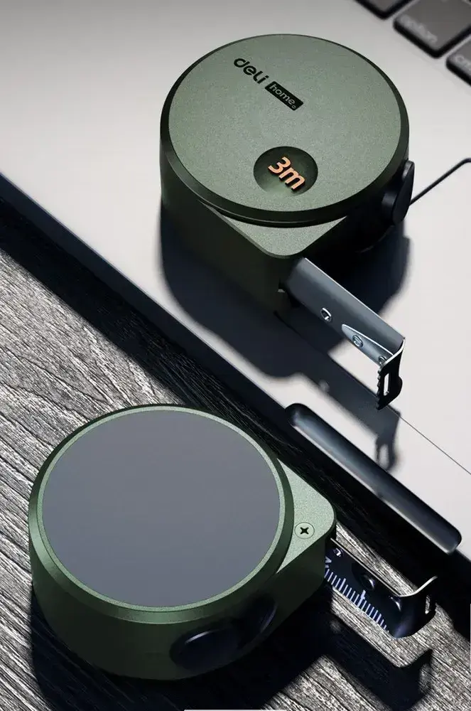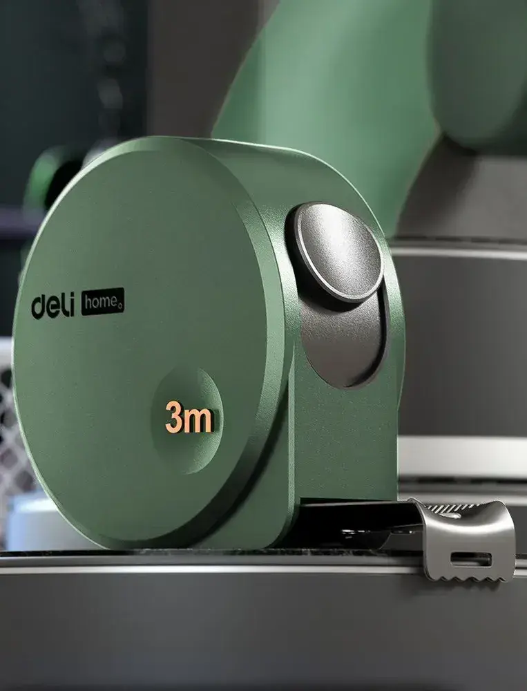 Рулетка "Home Series Green" Deli HT8316L 3мх16мм (Эксклюзивный дизайн, корпус из софттач пластика, противоскользящая резиновая вставка, подарочная упаковка)