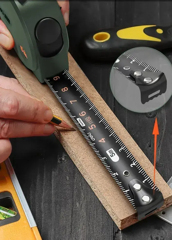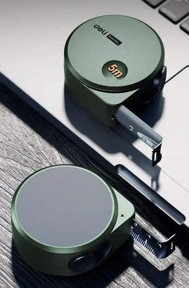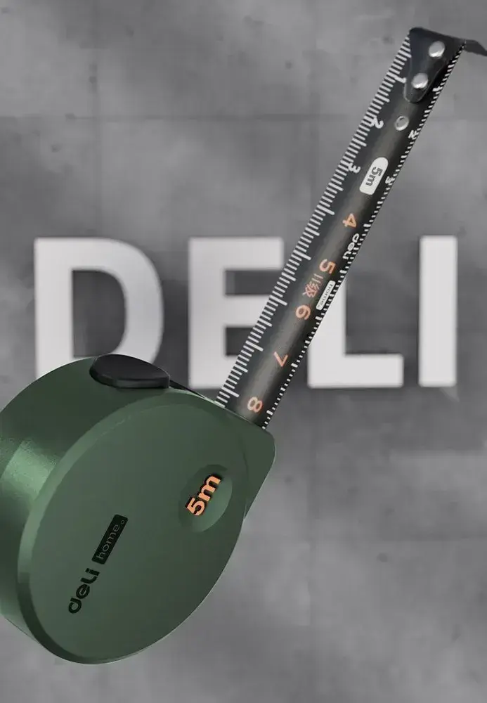 Рулетка "Home Series Green" Deli HT8519L 5мх19мм (Эксклюзивный дизайн, корпус из софттач пластика, противоскользящая резиновая вставка, подарочная упаковка)