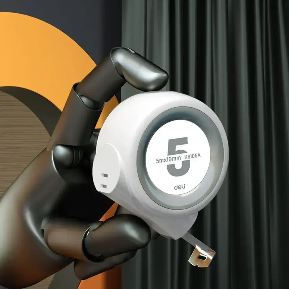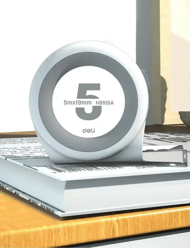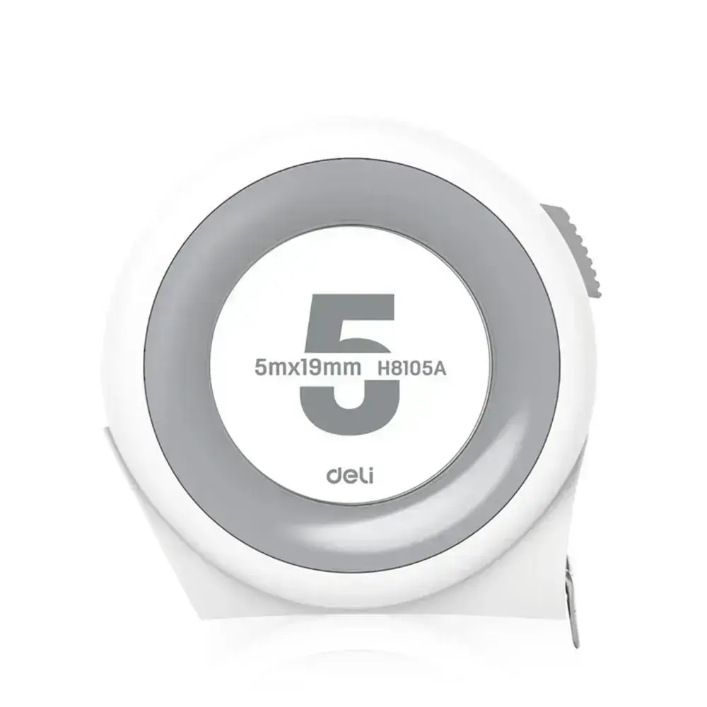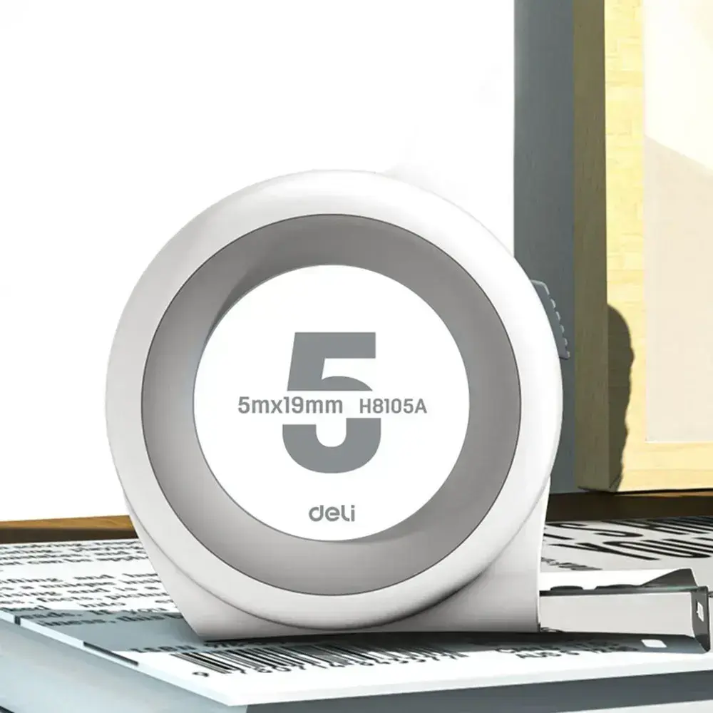 Рулетка "Home Series White" Deli H8105A 5м х 19мм (Эксклюзивный дизайн, клипса, ремешок, подарочная упаковка)