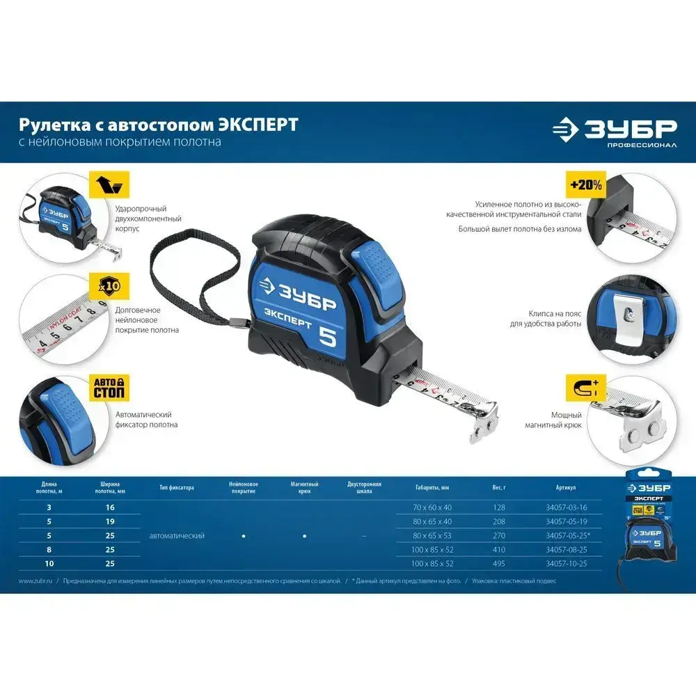 Рулетка измерительная 10 м. серия ПРОФЕССИОНАЛ ЗУБР 34057-10-25_z02