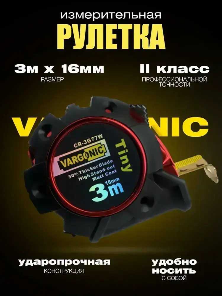 Рулетка измерительная 3 м, строительная ленточная рулетка 3 метра