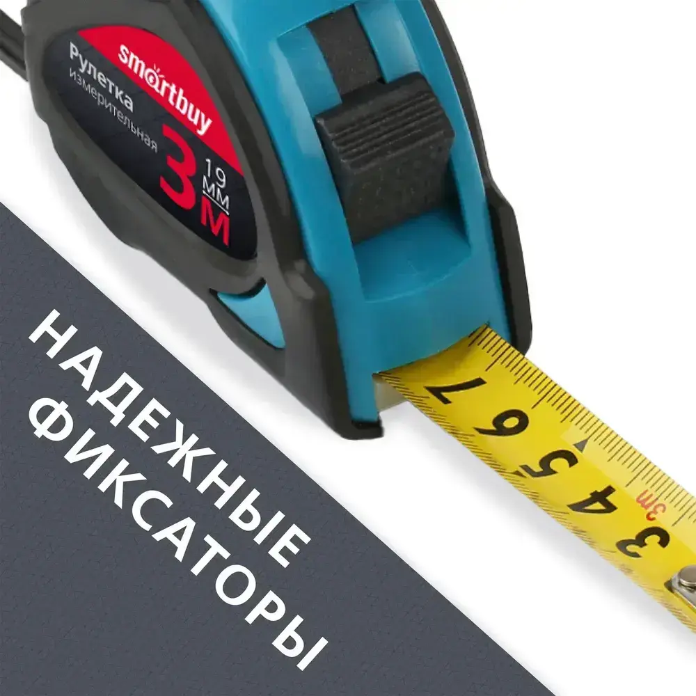 Рулетка измерительная Smartbuy Tools, 3мх19мм, прорезиненный корпус, 2 фиксатора, усиленный зацеп