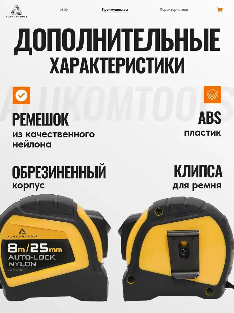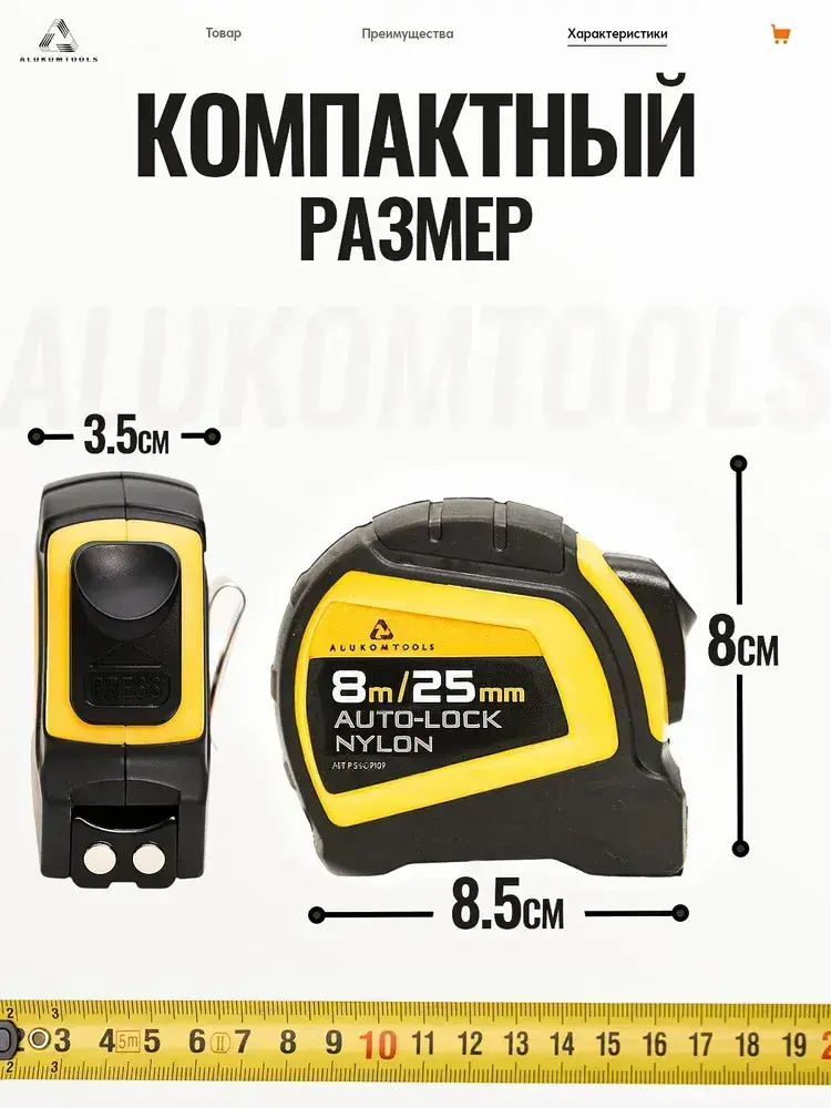 Рулетка строительная с автостопом, 8 м х 25 мм, AUTOLOCK нейлоновое покрытие, магнитный зацеп