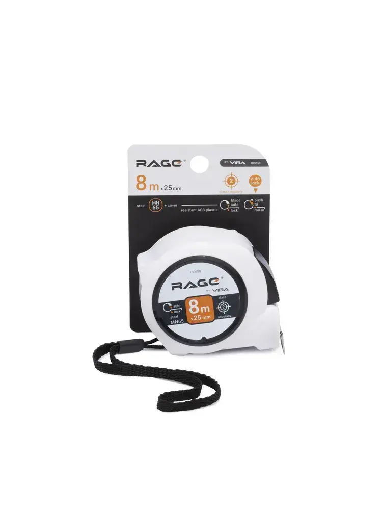Рулетка строительная с автостопом 8 м x 25 мм RAGE by VIRA