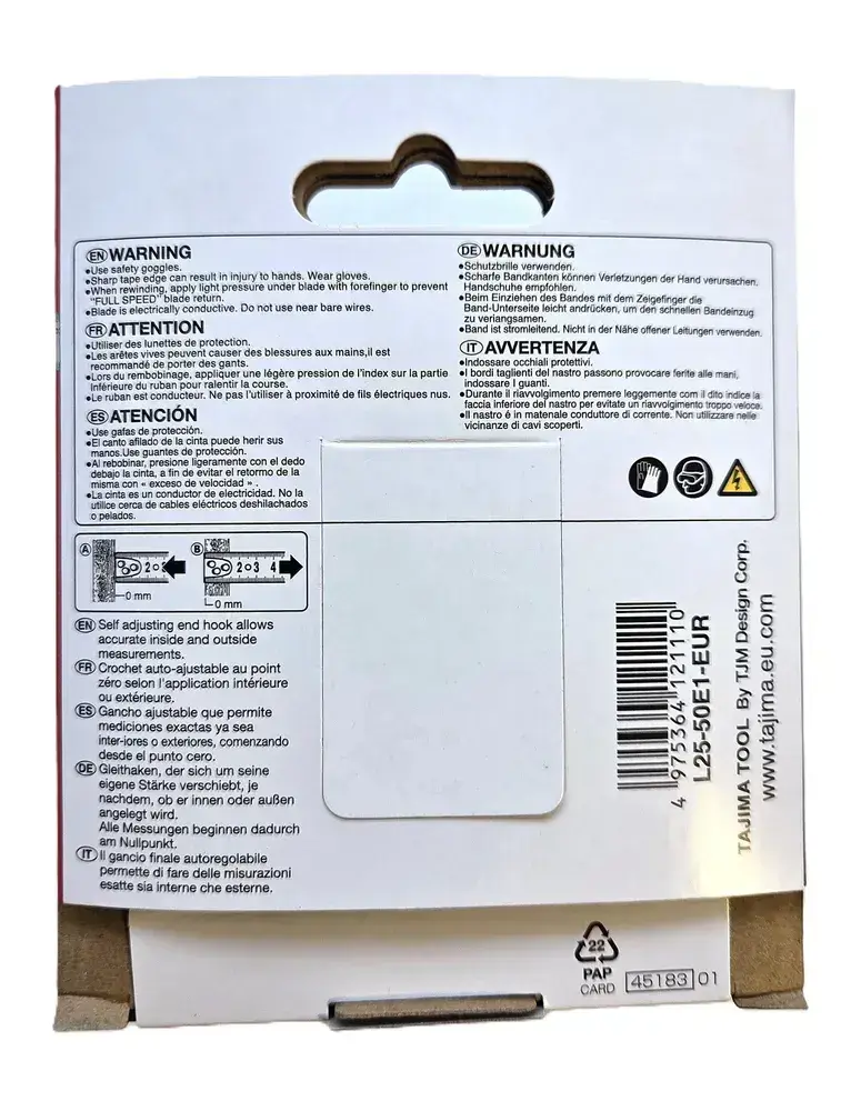 Рулетка TAJIMA Hi Lock Class1 (H1550MW) 5м/25мм (1-й класс точности)