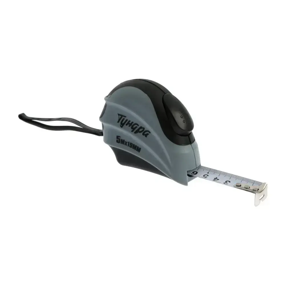 Рулетка Тундра, двухкомпонентный корпус, автостоп, 5 м х 19 мм