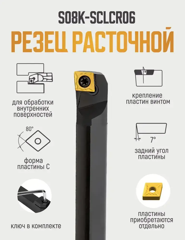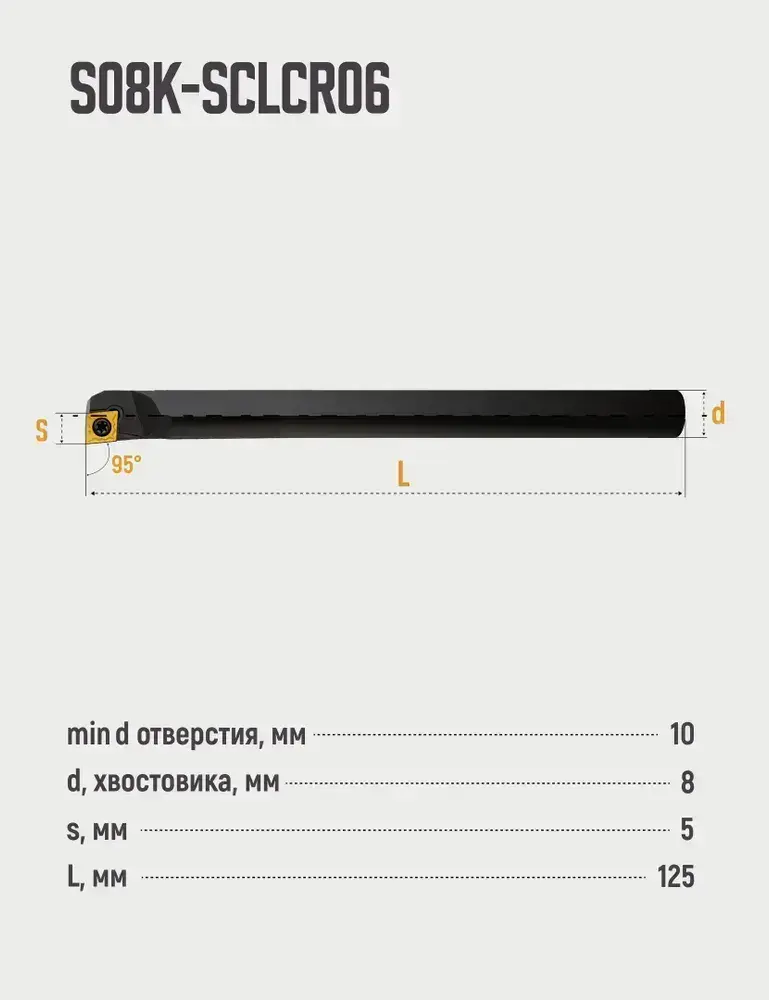 S08K-SCLCR06 Резец расточной для глухих отверстий