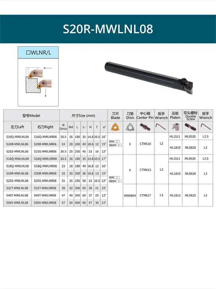 S20R-MWLNL08 резец расточной внутренний 20 мм левый / пластина W - Тригон 80 градусов