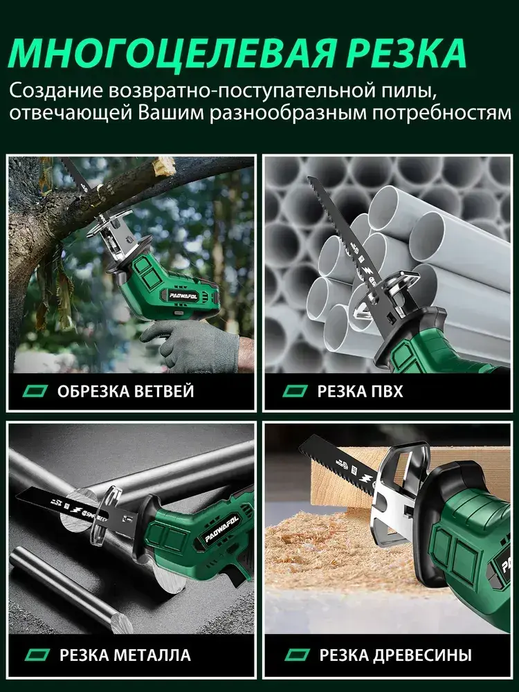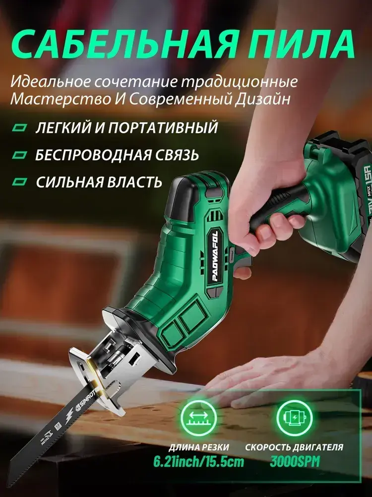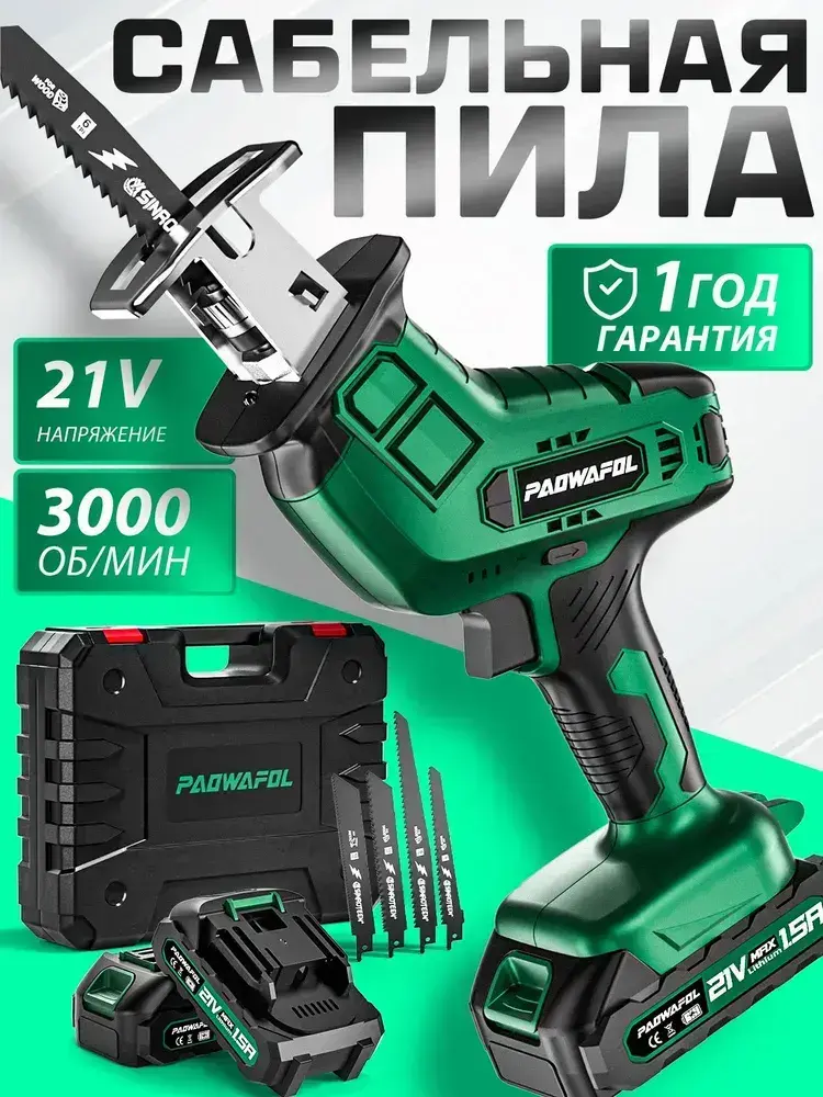 Сабельная пила аккумуляторная, 2 Батарейки 21 В , 3000 об/мин