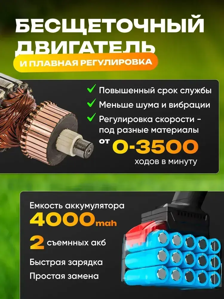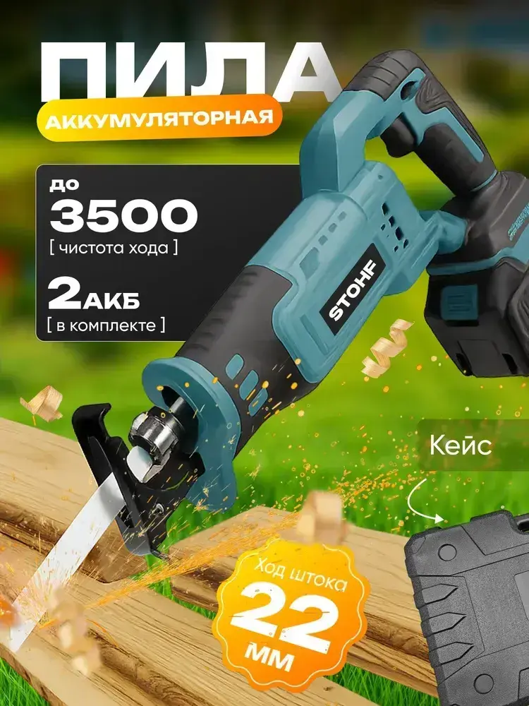 Сабельная пила аккумуляторная. 4 лезвия, 2 АКБ, перчатки, очки, кейс в комплекте