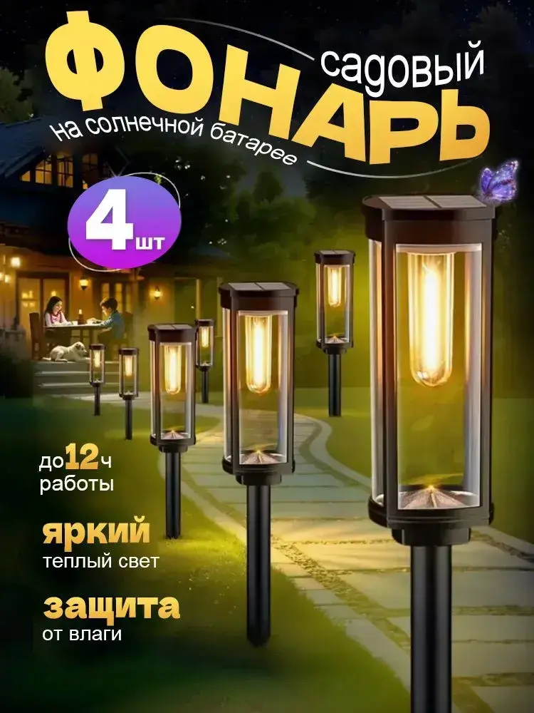садовые светильники на солнечных батареях 4 шт./Вольфрамовая проволока светильник уличный/Теплый