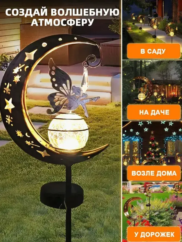 садовые светильники на солнечных батареях /луна светильник уличный/Теплый