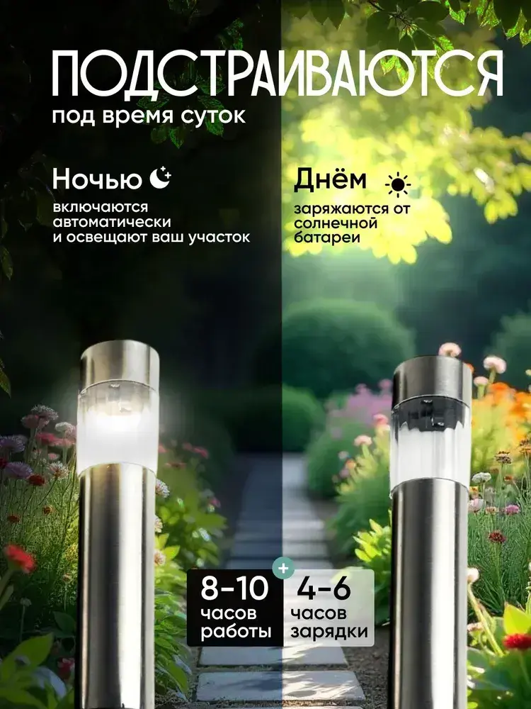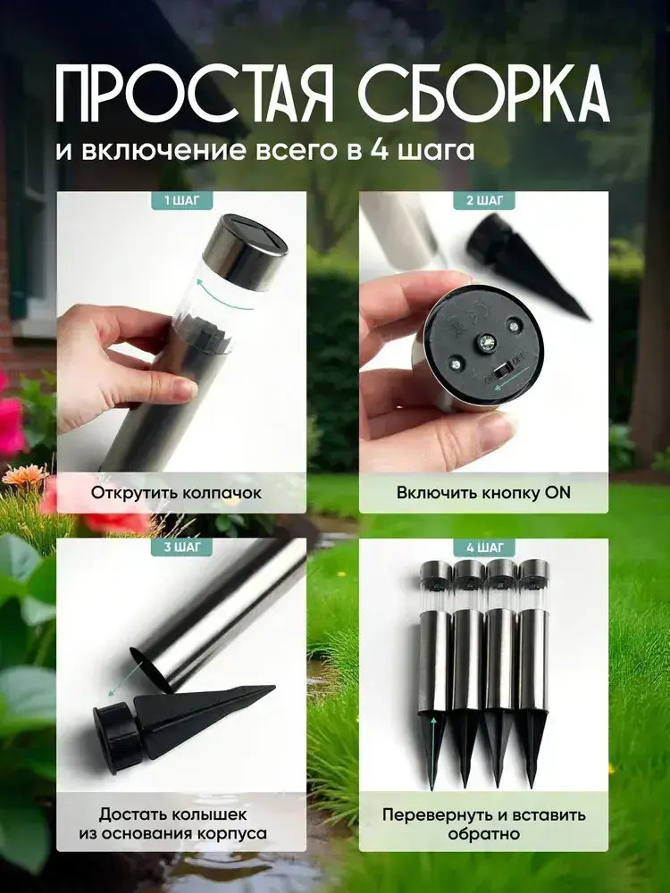 Садовые светильники на солнечных батареях набор, 4 шт. Фонарики садовые на солнечных батареях