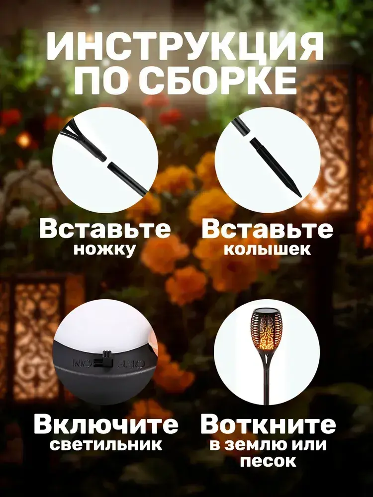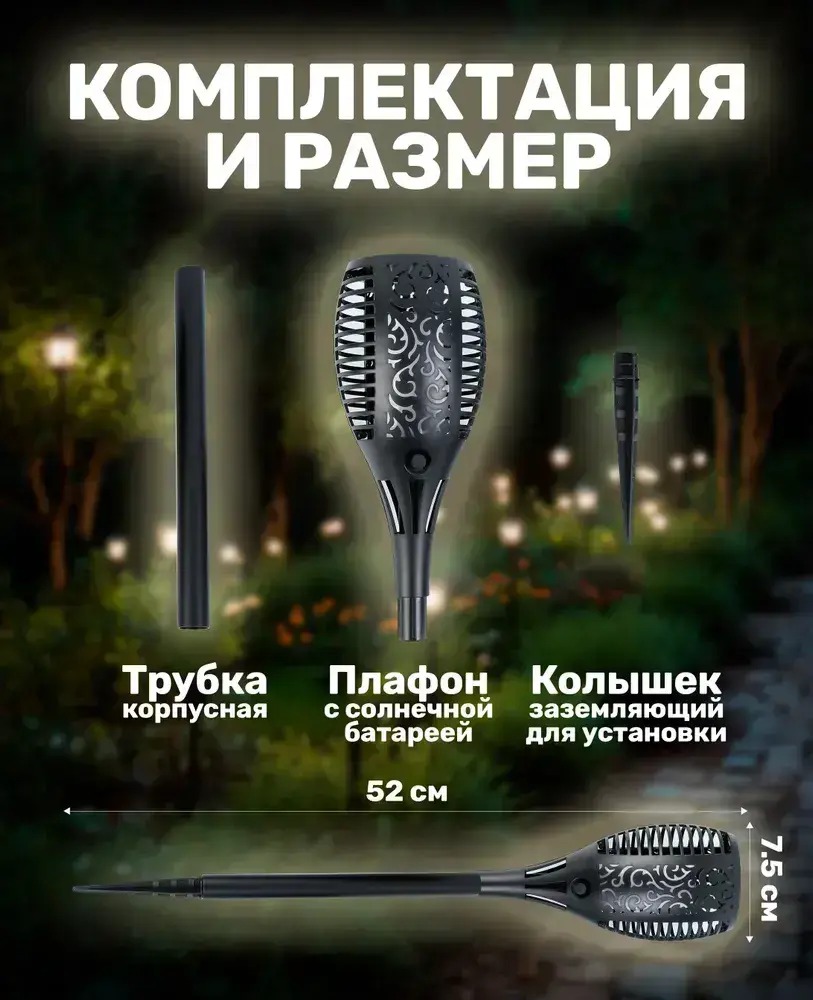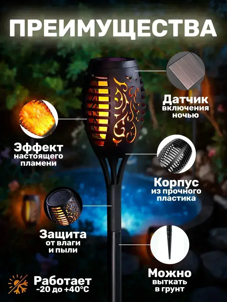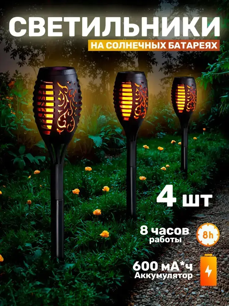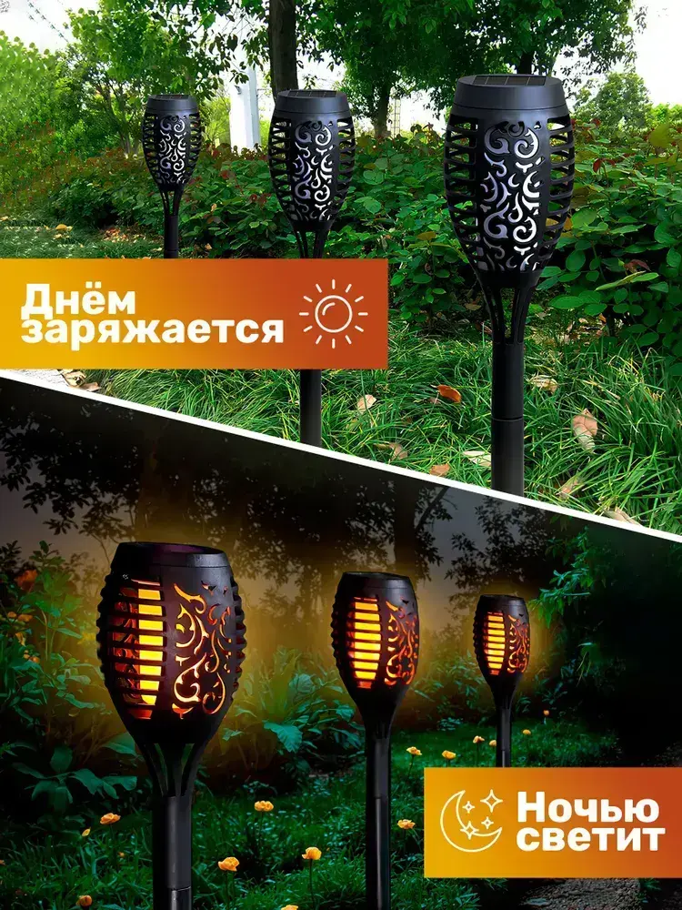 Садовые светильники уличные на солнечной батарее с эффектом пламени