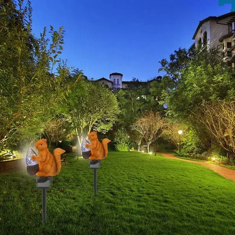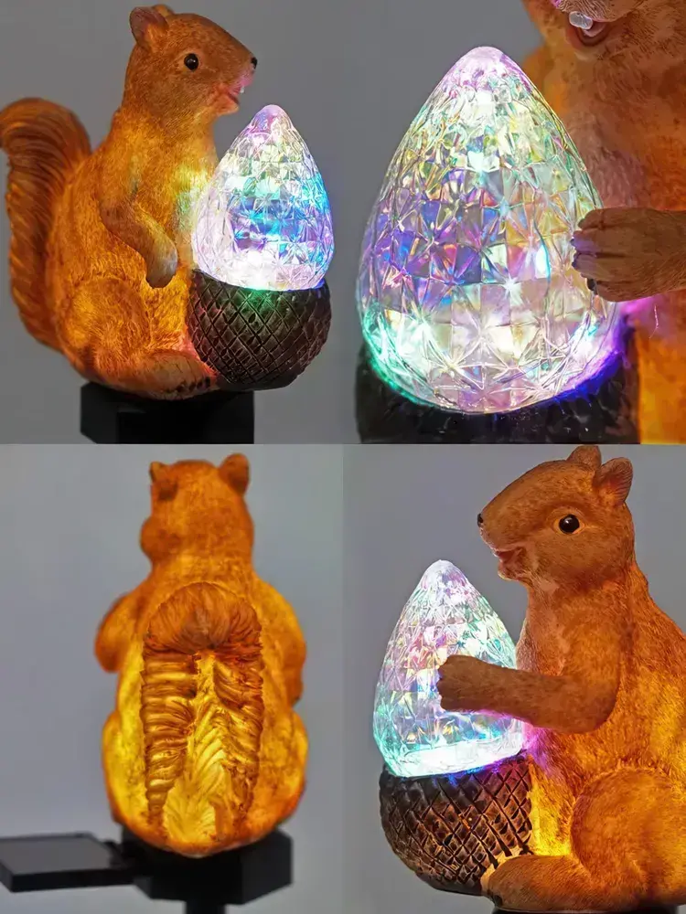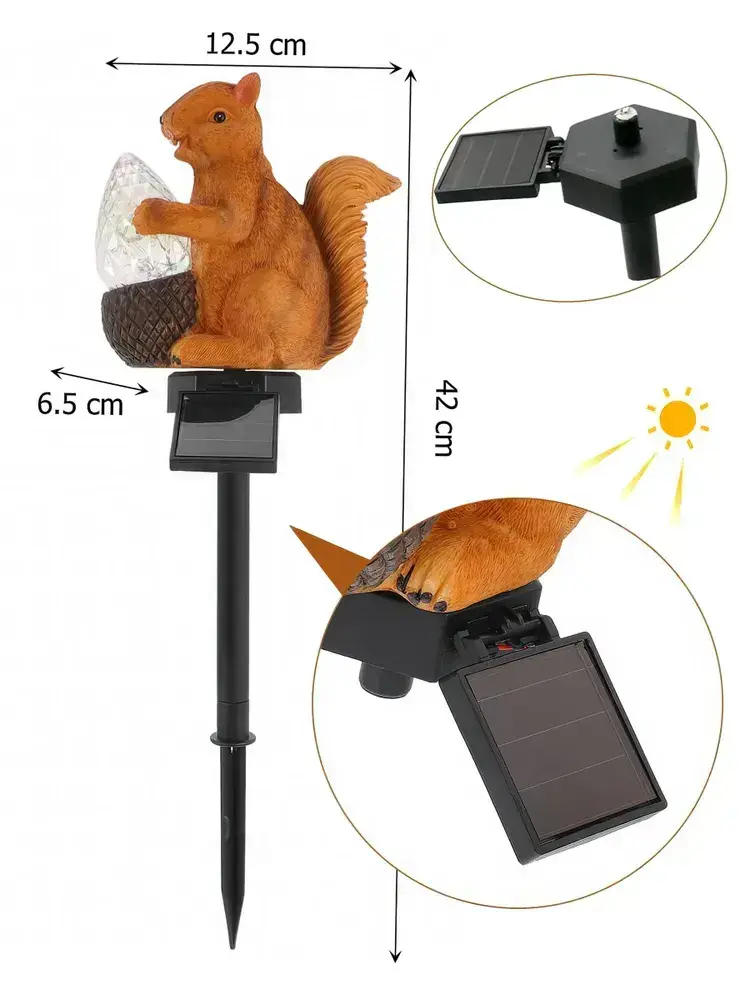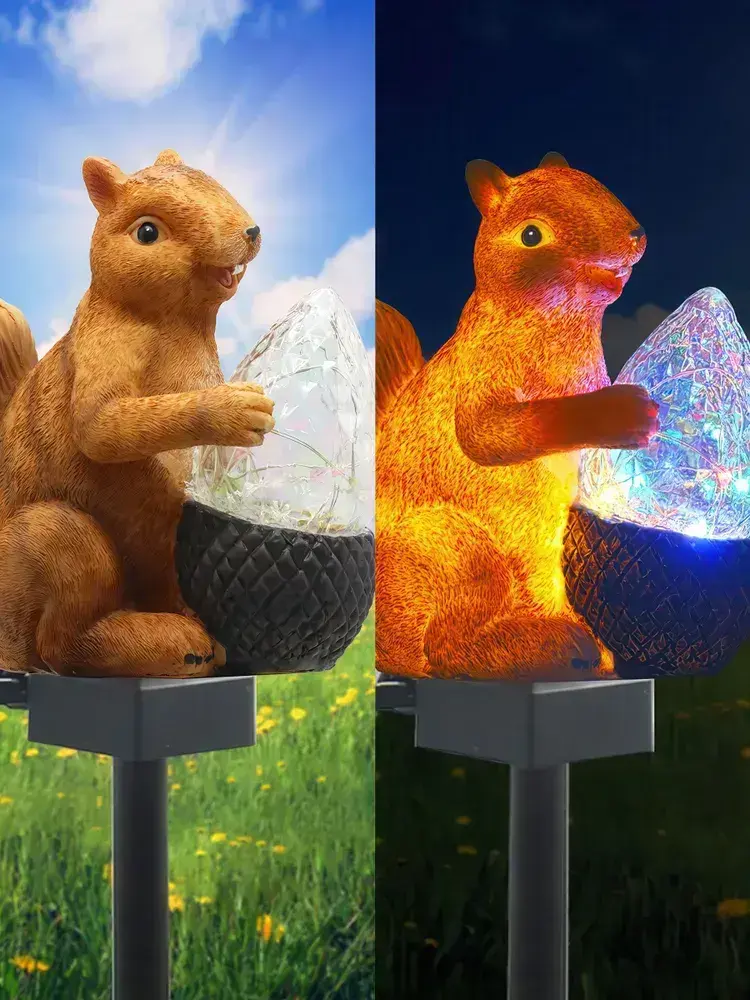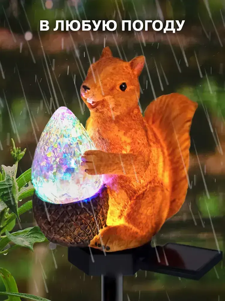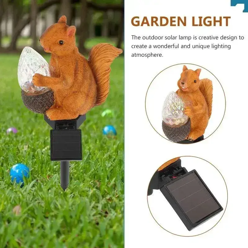 Садовый фонарь белка с орешком, украшение сада, для улицы, на солнечной батареи