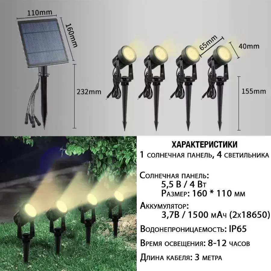 Садовый светильник на солнечном аккумуляторе / подсветка для сада (белый свет)