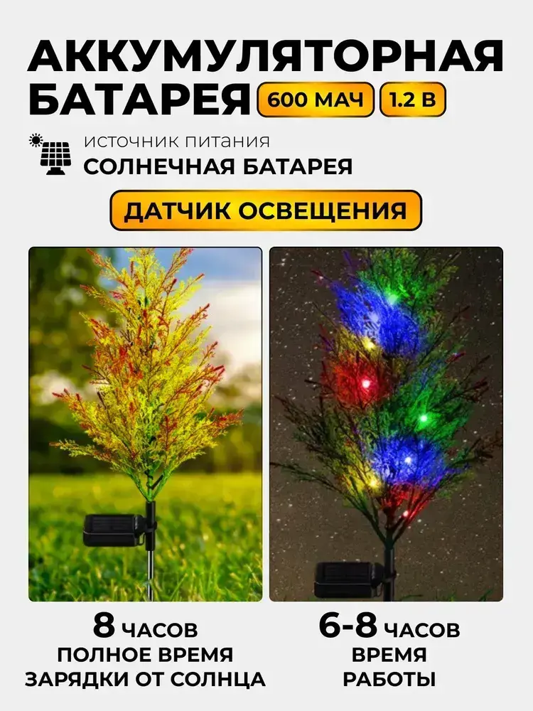 Садовый светильник на солнечной батарее, 2 шт., Кипарис/ Уличный фонарик