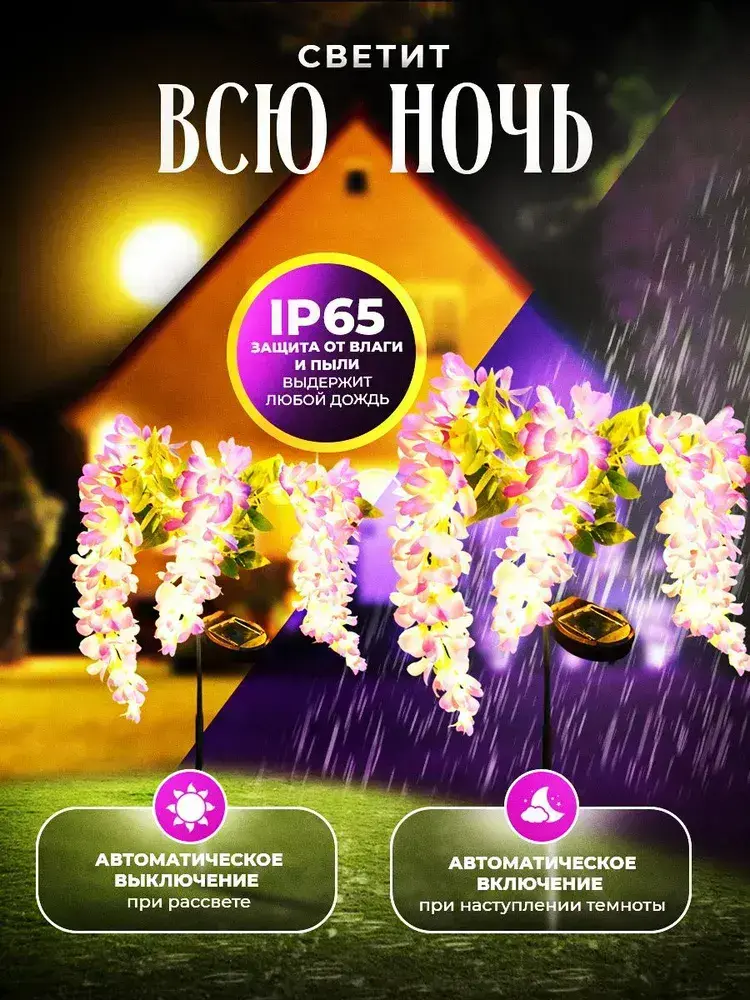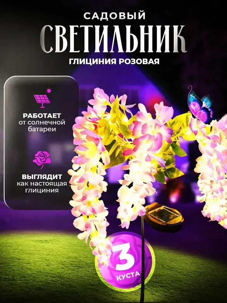 Садовый светильник уличный глициния на солнечной батарее