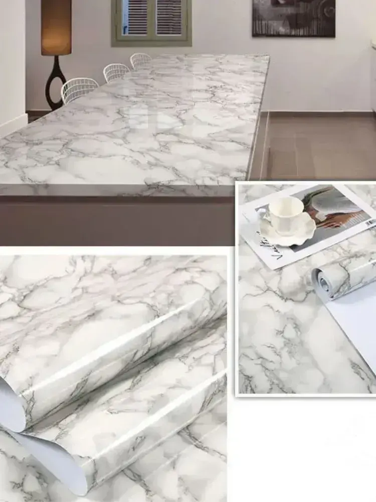 Самоклеящаяся защитная пленка для кухни и мебели /3м на 60см/ мраморная белая