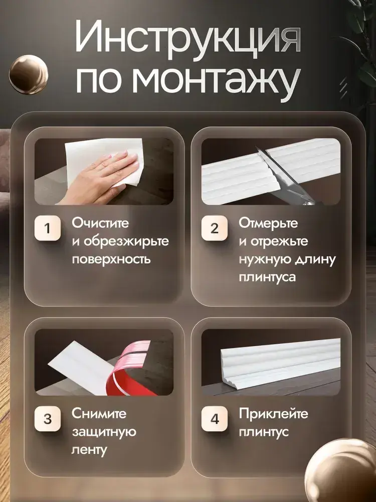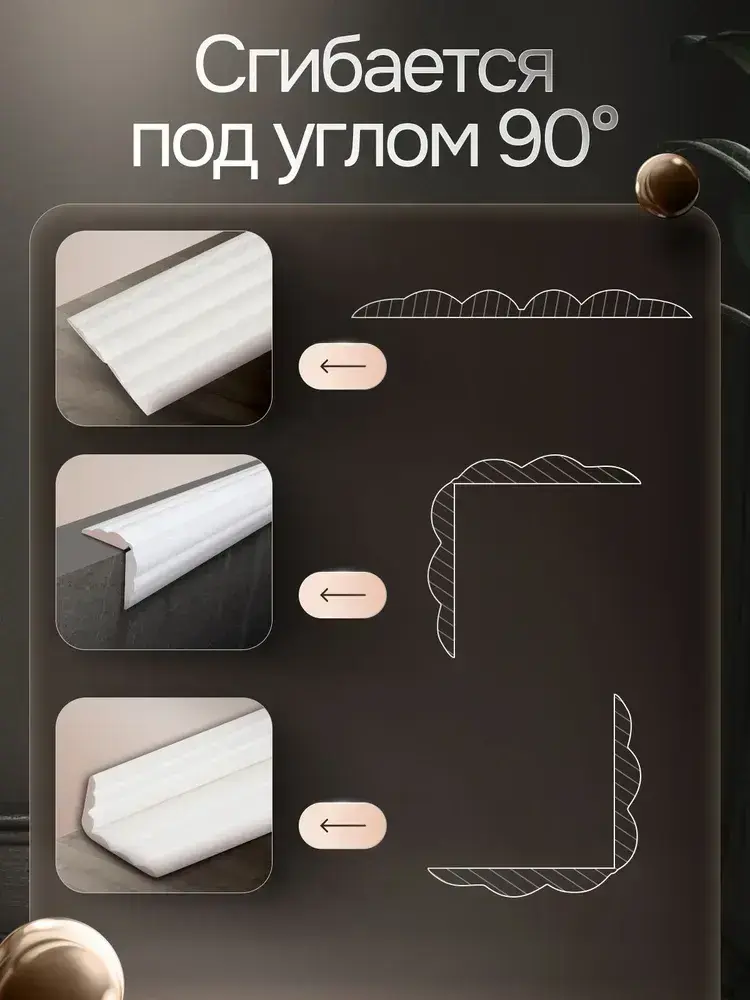 Самоклеящийся потолочный плинтус интерьерный белый,3м. Декор молдинг для стен и кухни. Галтели для потолка ПВХ